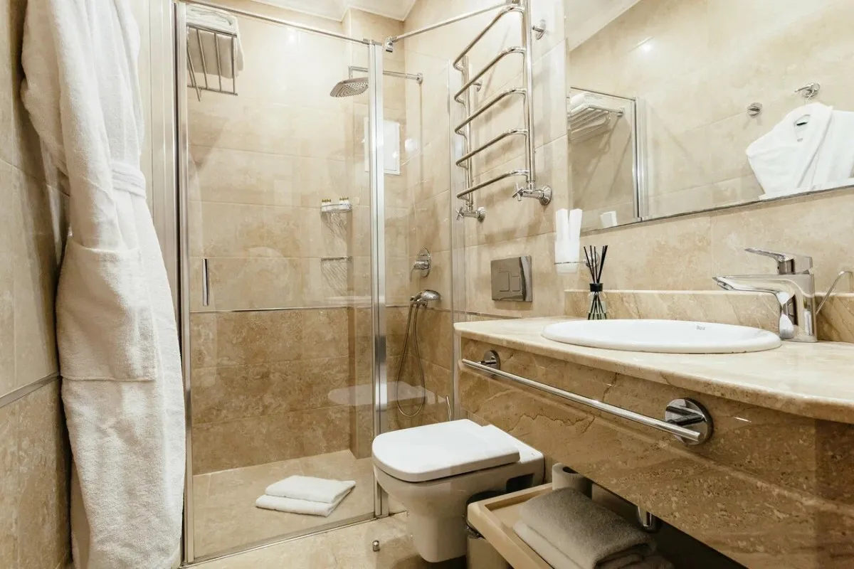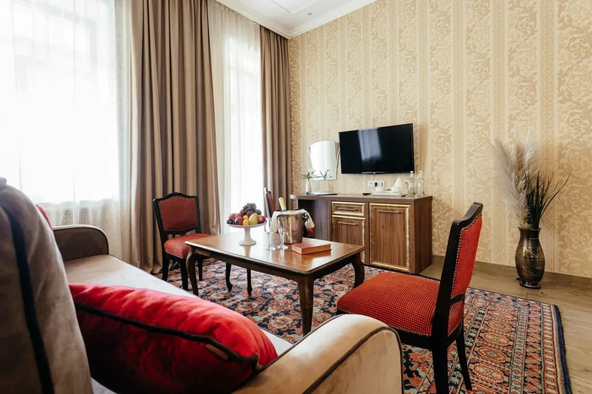 40 м2, вид на парковую зону, внутренний дворик, двухкомнатный номер без балкона повышенной комфортности со всеми удобствами, оборудован одной двуспальной кроватью, гостиная зона. Вместимость: 2 основных + 1–2 доп. места