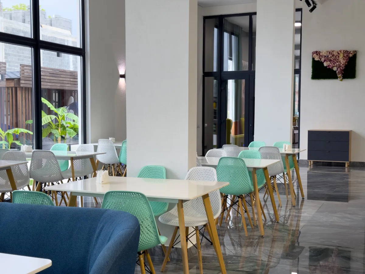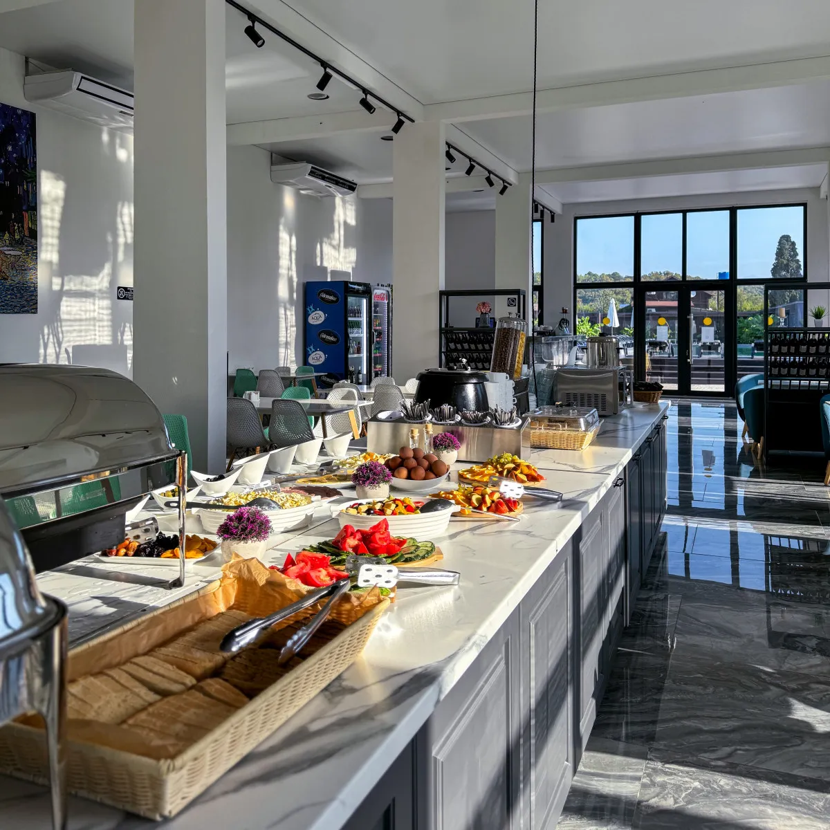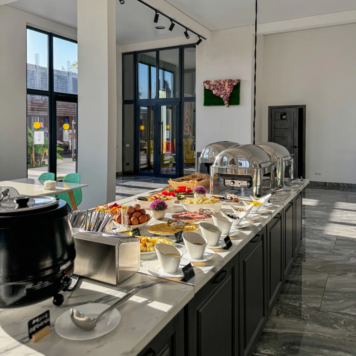 Ресторан Marna – блюда русской, европейской, кавказской кухни, есть smart уголок с чайником, микроволновой печью.