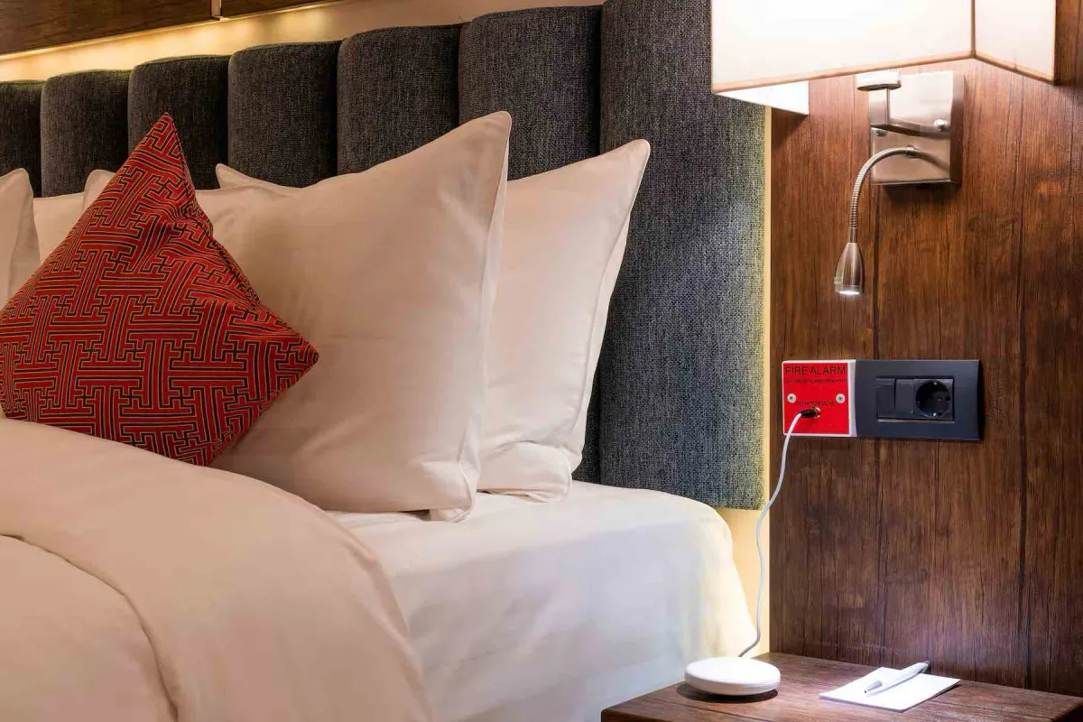 две спальни, две king-size кровати, гостиная зона, мини-кухня, возможна установка дополнительной кровати. Максимальное количество гостей: 5 взрослых.
