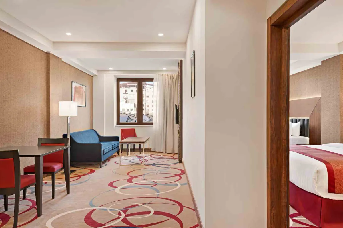 Ramada Hotel and Suites by Wyndham Yerevan расположен в городе Ереван, в пешей доступности от площади Республики и Национальной галереи Армении, а также рядом с торговыми, гастрономическими и развлекательными районами города. Отель подходит как для деловых поездок, так и для туристического отдыха, предлагая комфортное размещение и широкий спектр услуг.
