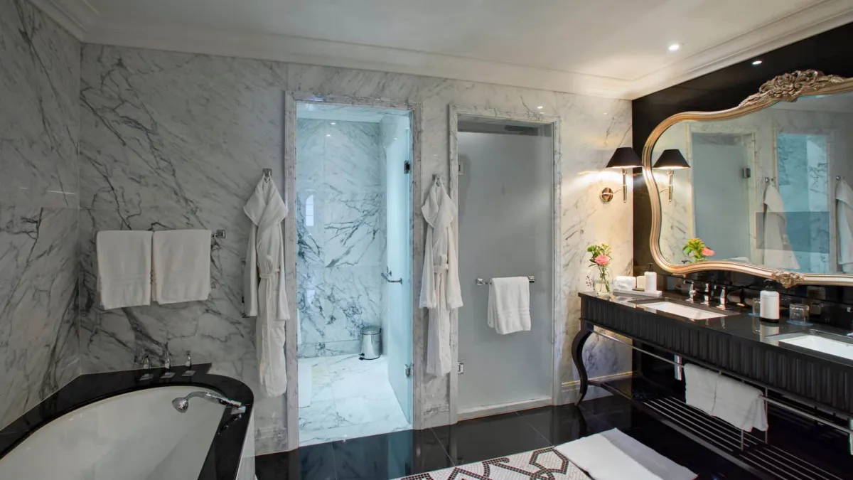 75 м2, номер с кроватью king-size и видом на исторический район Баку. Ванная комната с мраморной отделкой, двойной раковиной, зеркалом со встроенным телевизором, глубокой ванной, отдельной душевой кабиной с тропическим душем, отдельный санузел с биде; просторная гардеробная и балкон. Максимальное количество гостей: 3 взрослых и 1 ребенок.