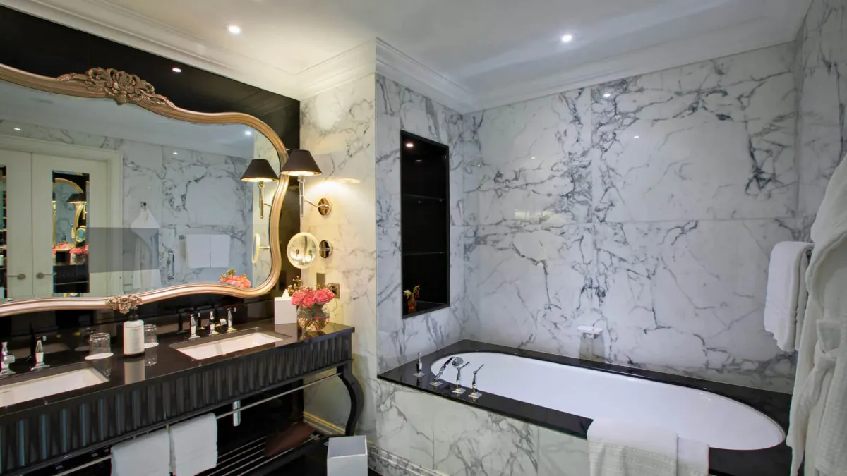 Архитектура и интерьер отеля выполнены с элементами стиля бозар – это отражается в симметричных фасадах, высоких потолках и декоративных молдингах. В отделке используются натуральные материалы и современные технологии, а цветовая гамма сочетает светлые нейтральные тона с акцентами из дерева, мрамора и металлов.