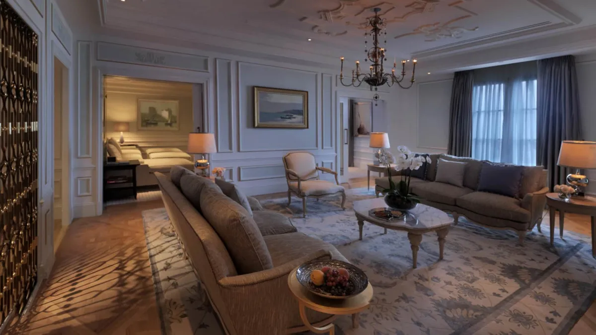 205 м2, номер с двумя спальнями с двумя кроватями king-size либо с одной кроватью king-size и одной односпальной кроватью и панорамным видом на Каспийское море. Две ванные комнаты с мраморной отделкой; мини-кухня. Максимальное количество гостей: 6 взрослых или 2 взрослых и 4 ребенка.