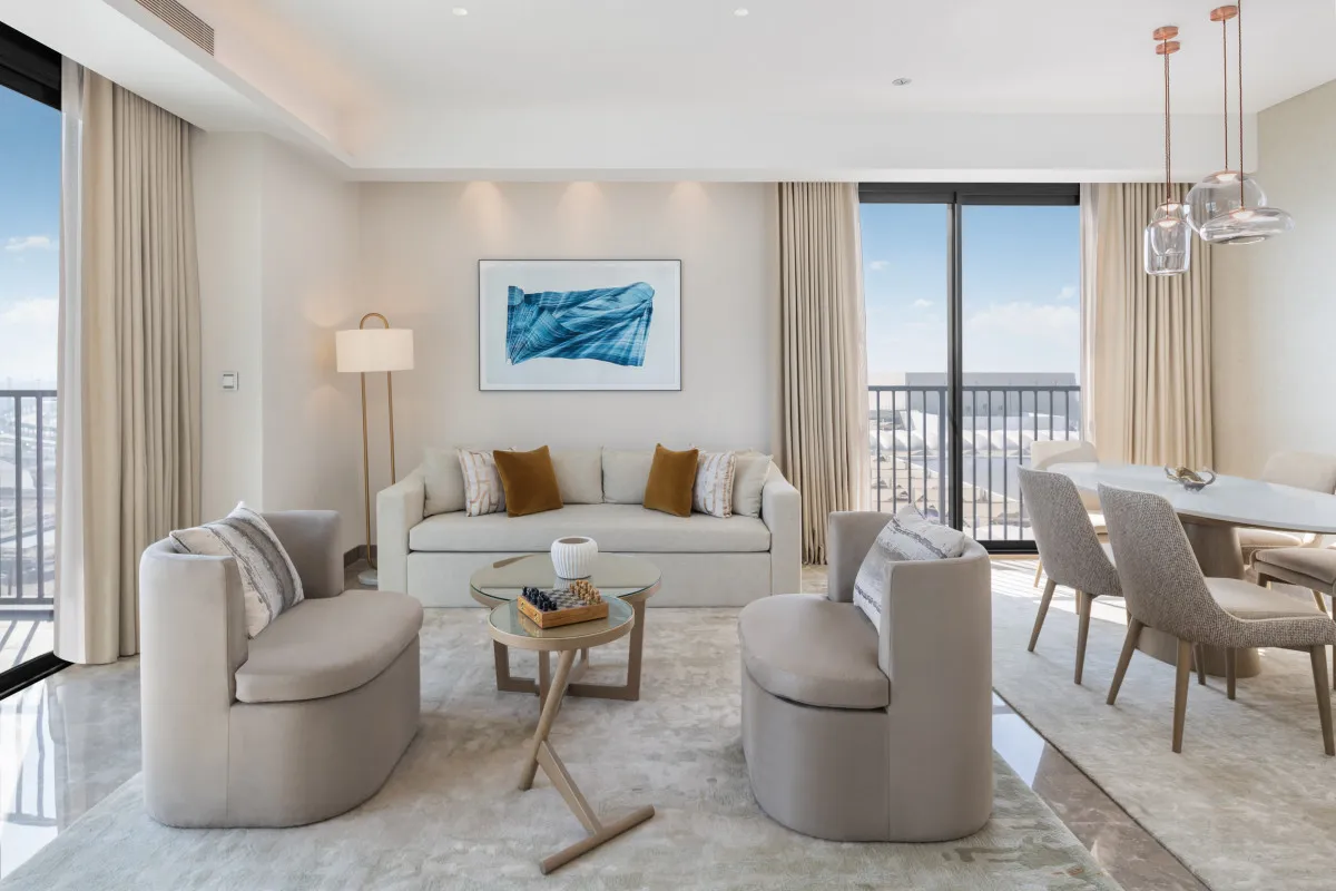Vida Beach Resort Marassi Al Bahrain 5* – роскошный курортный отель, расположенный в пляжном районе Марасси в северной части Бахрейна. Отель имеет прямой выход к протяженной песчаной береговой линии, что определяет его основную концепцию – отдых у моря. Архитектура и дизайн комплекса сочетают современные минималистичные формы с элементами арабской эстетики, создавая атмосферу сдержанного шика. В оформлении общественных пространств, номеров и апартаментов используются натуральные материалы, светлые тона и панорамное остекление, визуально соединяющее интерьеры с природным ландшафтом – морем, бассейнами и частным пляжем.