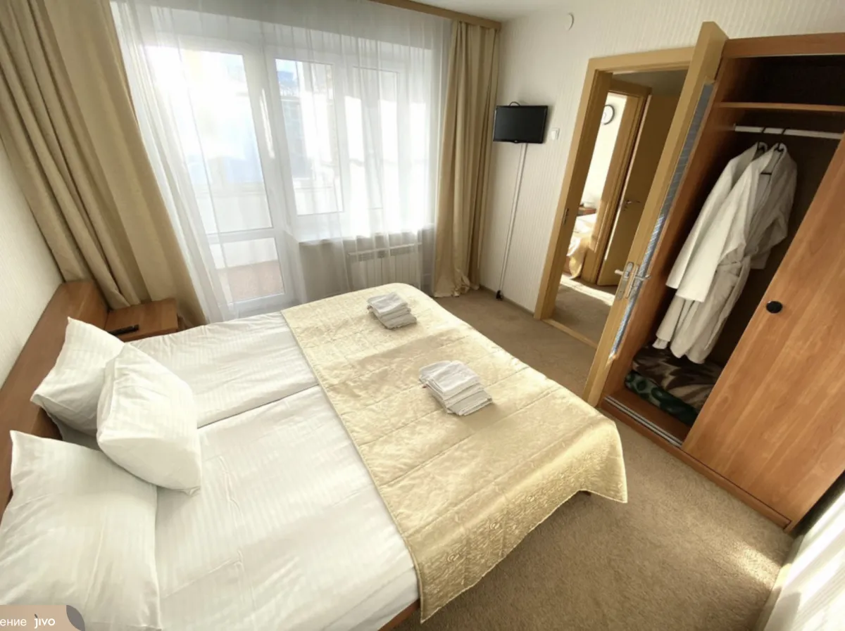 20 м2, двухкомнатный номер с двуспальной кроватью (180 см) и односпальной (90 см). Максимальное количество гостей: 3 человека.