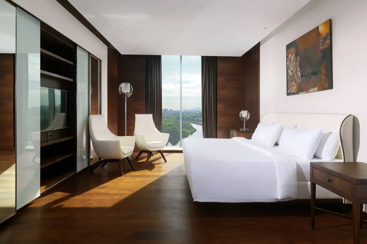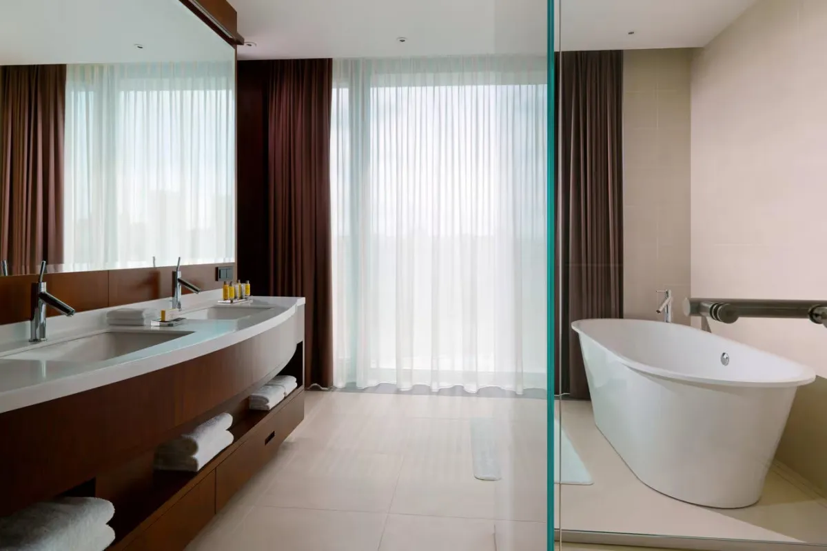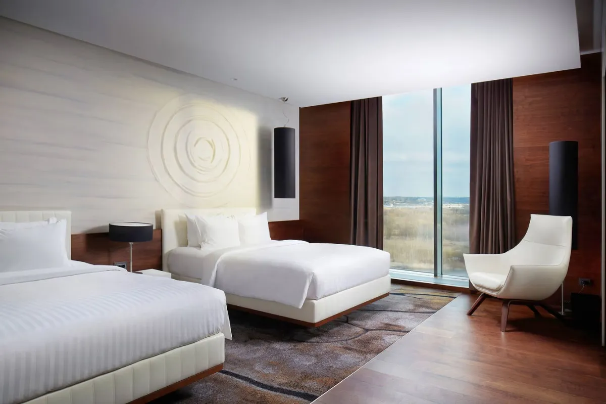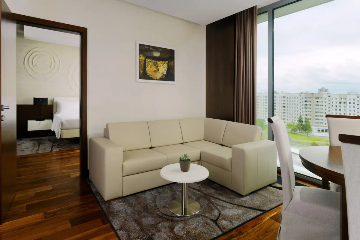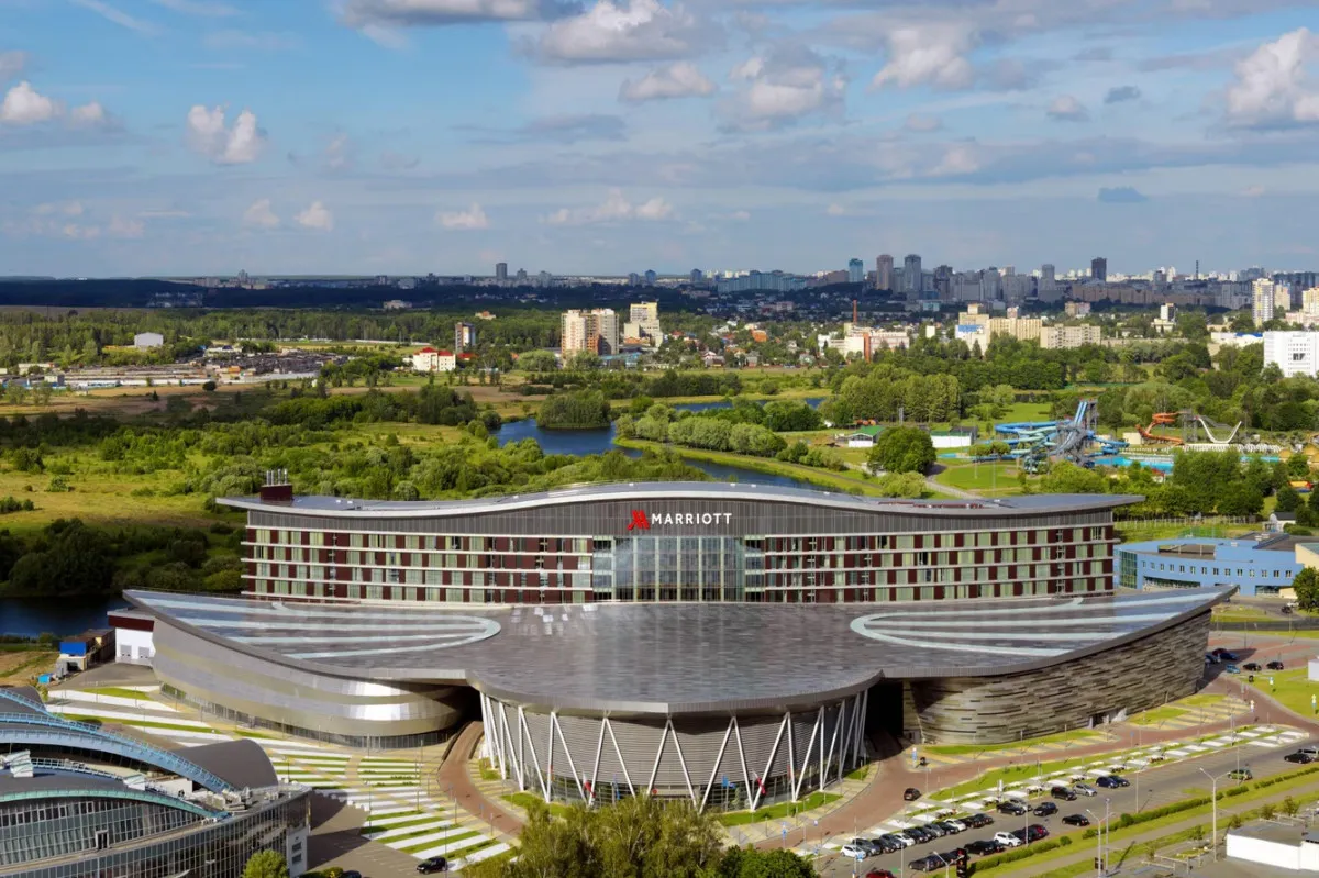 Minsk Marriott Hotel – современный отель международного уровня, расположенный в центре столицы Беларуси, рядом с главным выставочным центром и спортивным комплексом «Минск-Арена». Архитектура и интерьер сочетают европейский стиль и атмосферу уюта, создавая комфортные условия для отдыха и деловых поездок.