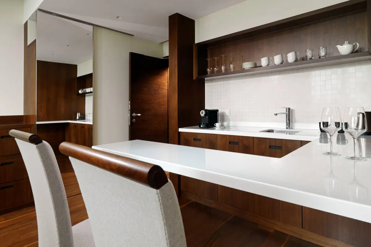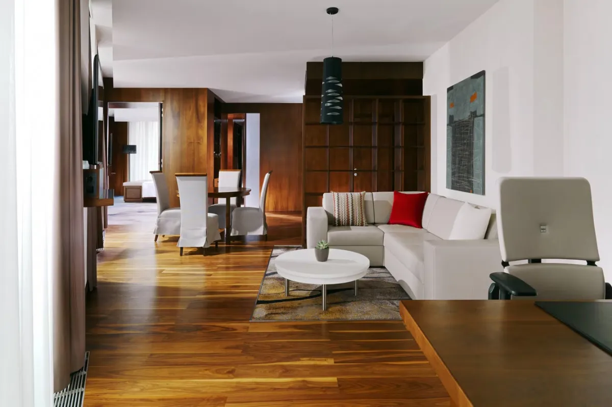 55 м2, двуспальная кровать размера «king-size», отдельная гостиная с раскладным диваном, столовая зона, доступ в лаунж. Количество гостей: 3