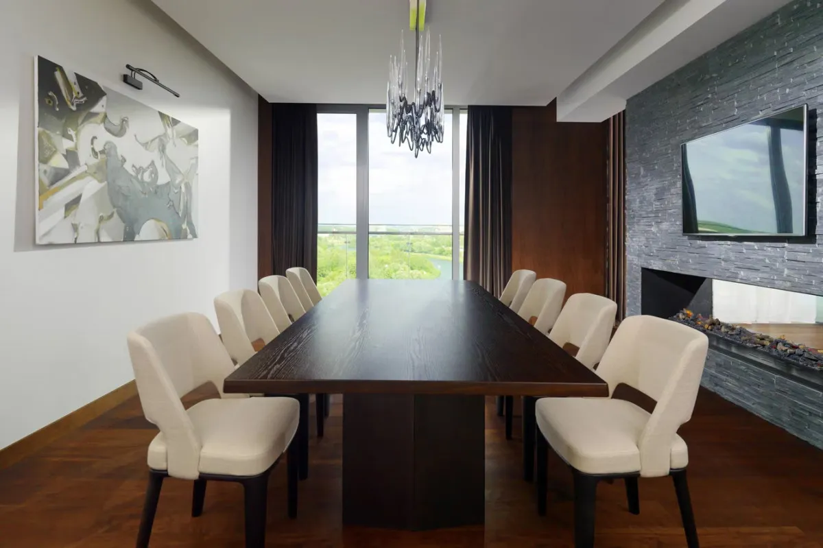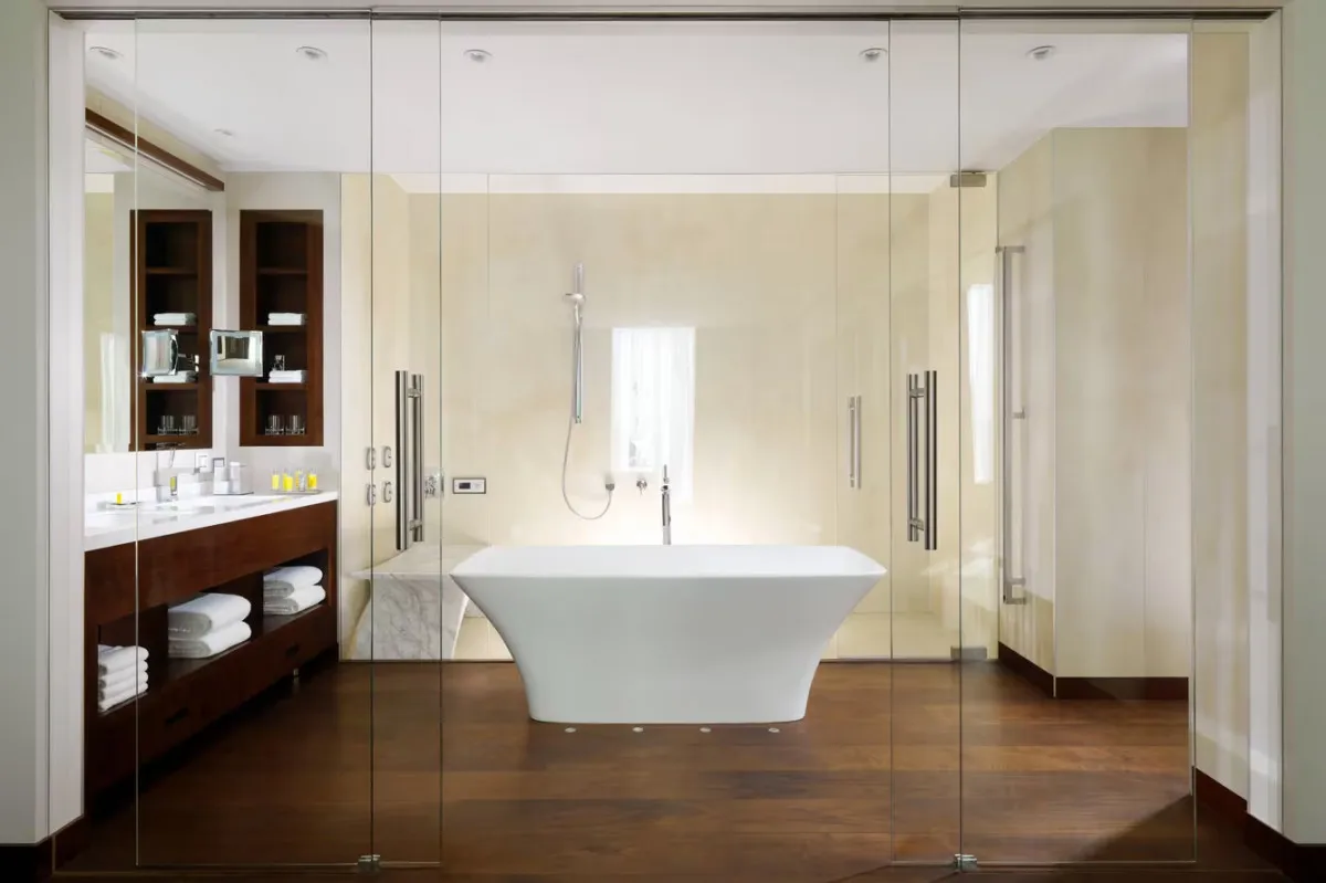 260 м2, две спальни, двуспальная кровать размера «king-size», две кровати размера «queen-size», две ванные комнаты, отдельная гостиная с раскладным диваном, столовая, кабинет с библиотекой, доступ в лаунж, балкон. Количество гостей: 4