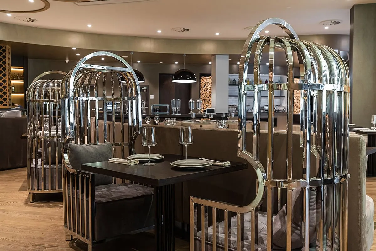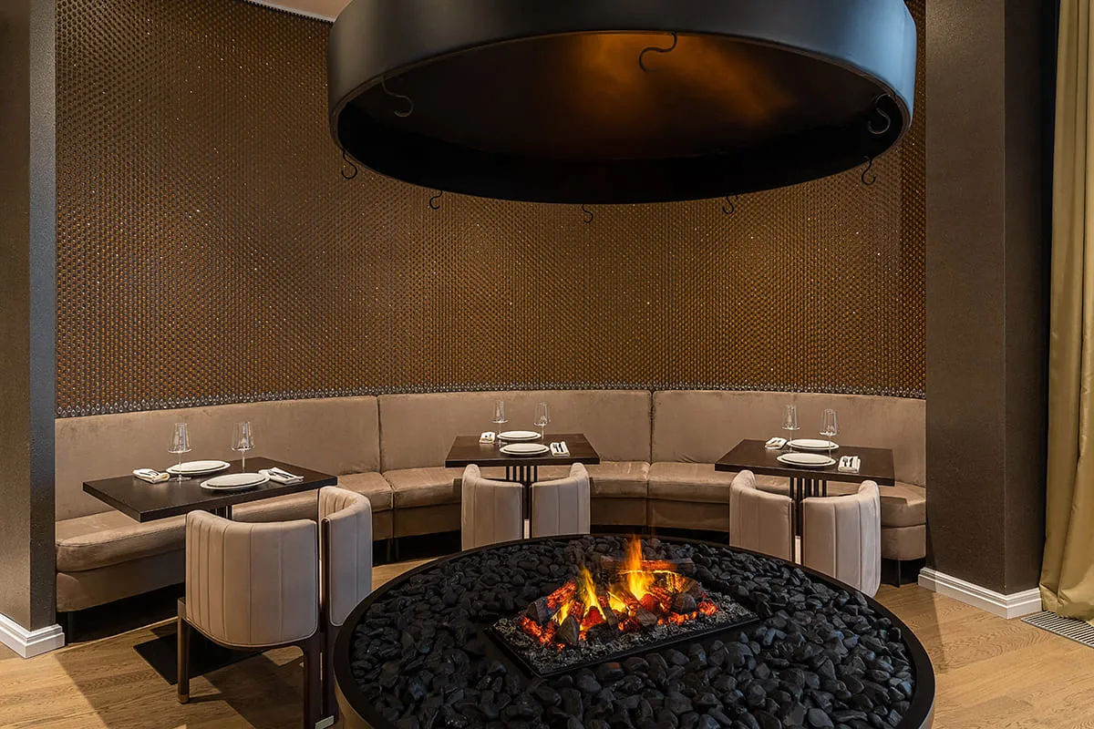Ресторан сочетает изысканный интерьер, авторскую европейскую и белорусскую кухню, утонченную винную карту и высокий уровень сервиса