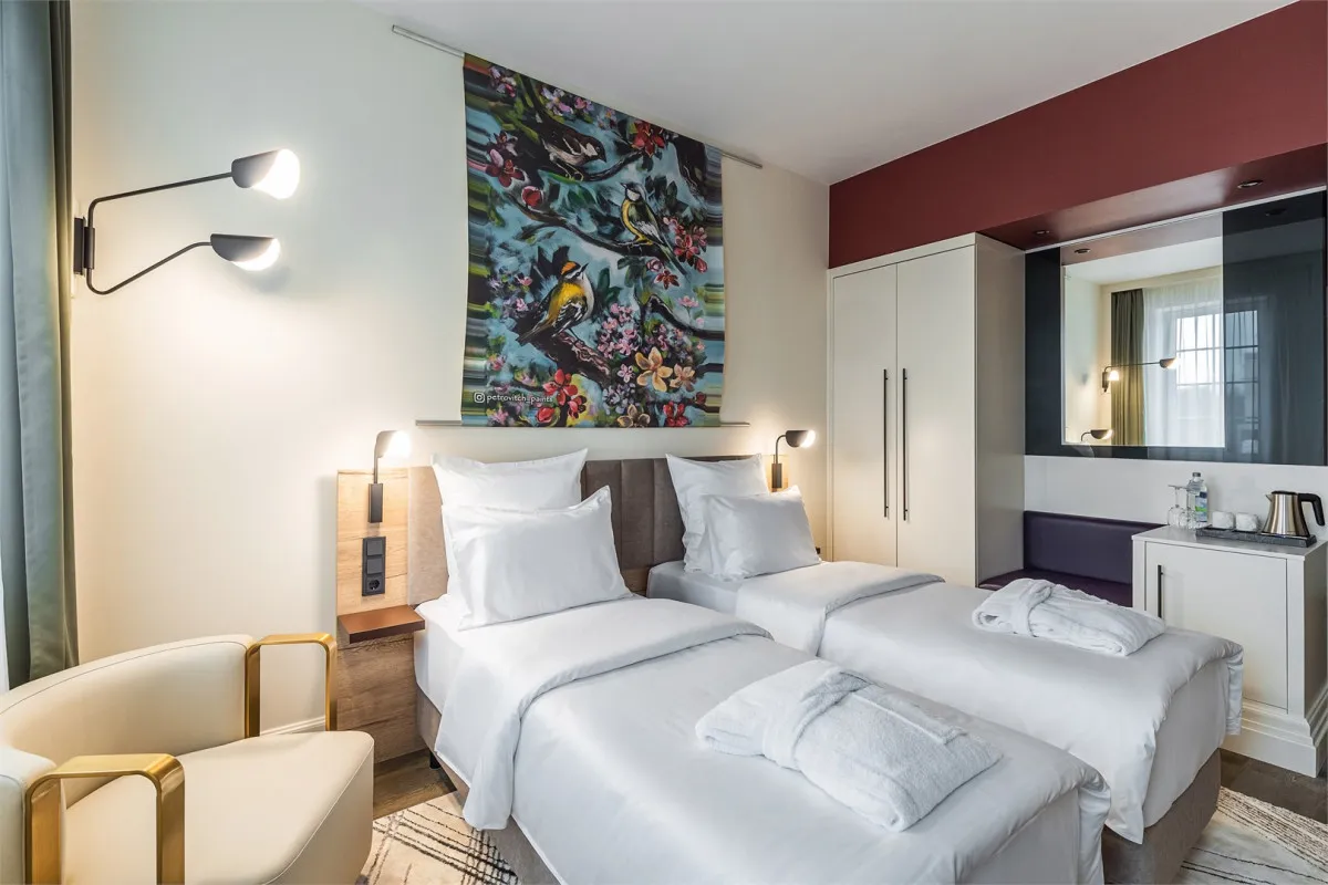 две односпальные кровати, зона отдыха, вид на город или во двор. Количество гостей: 2