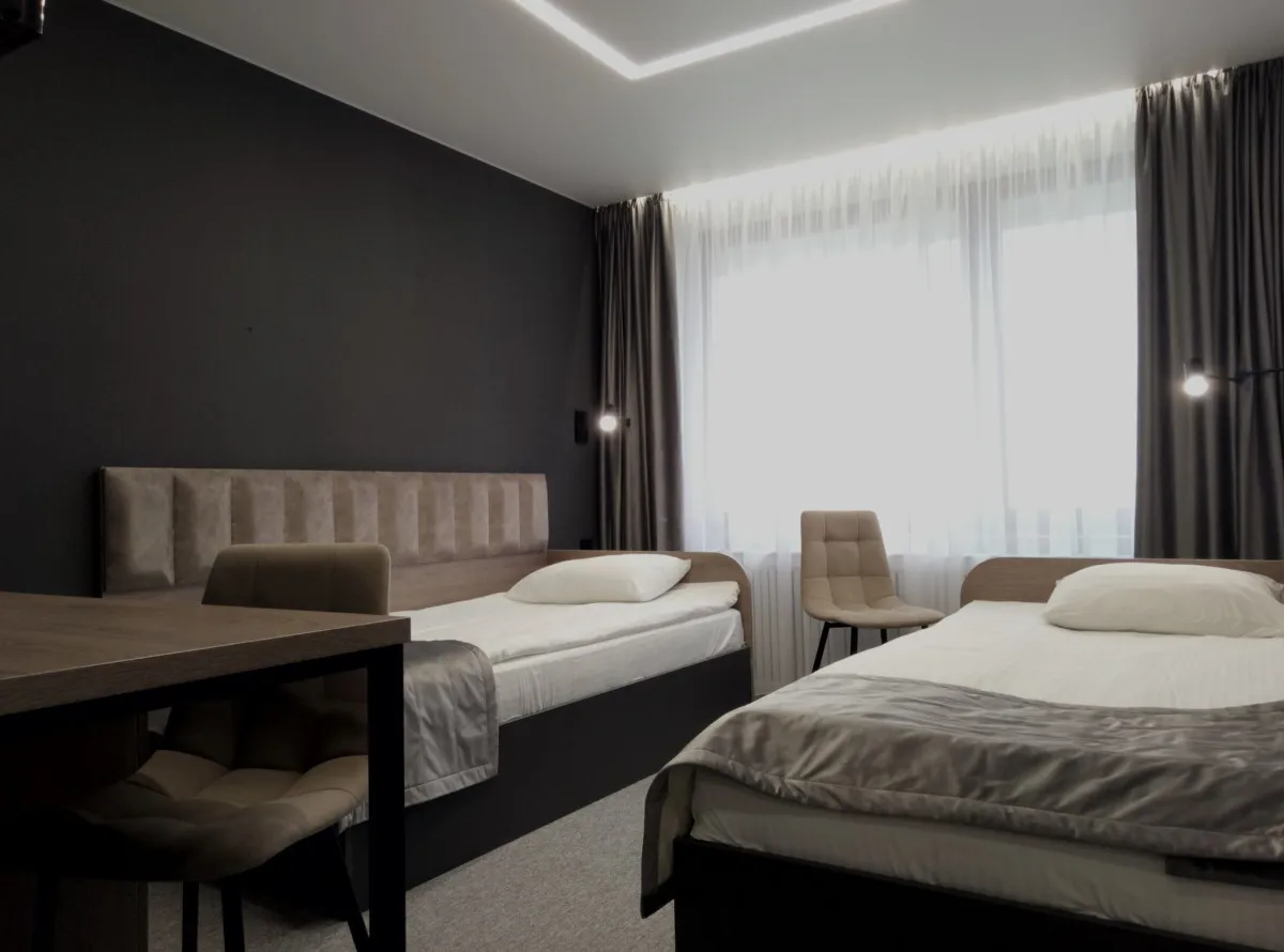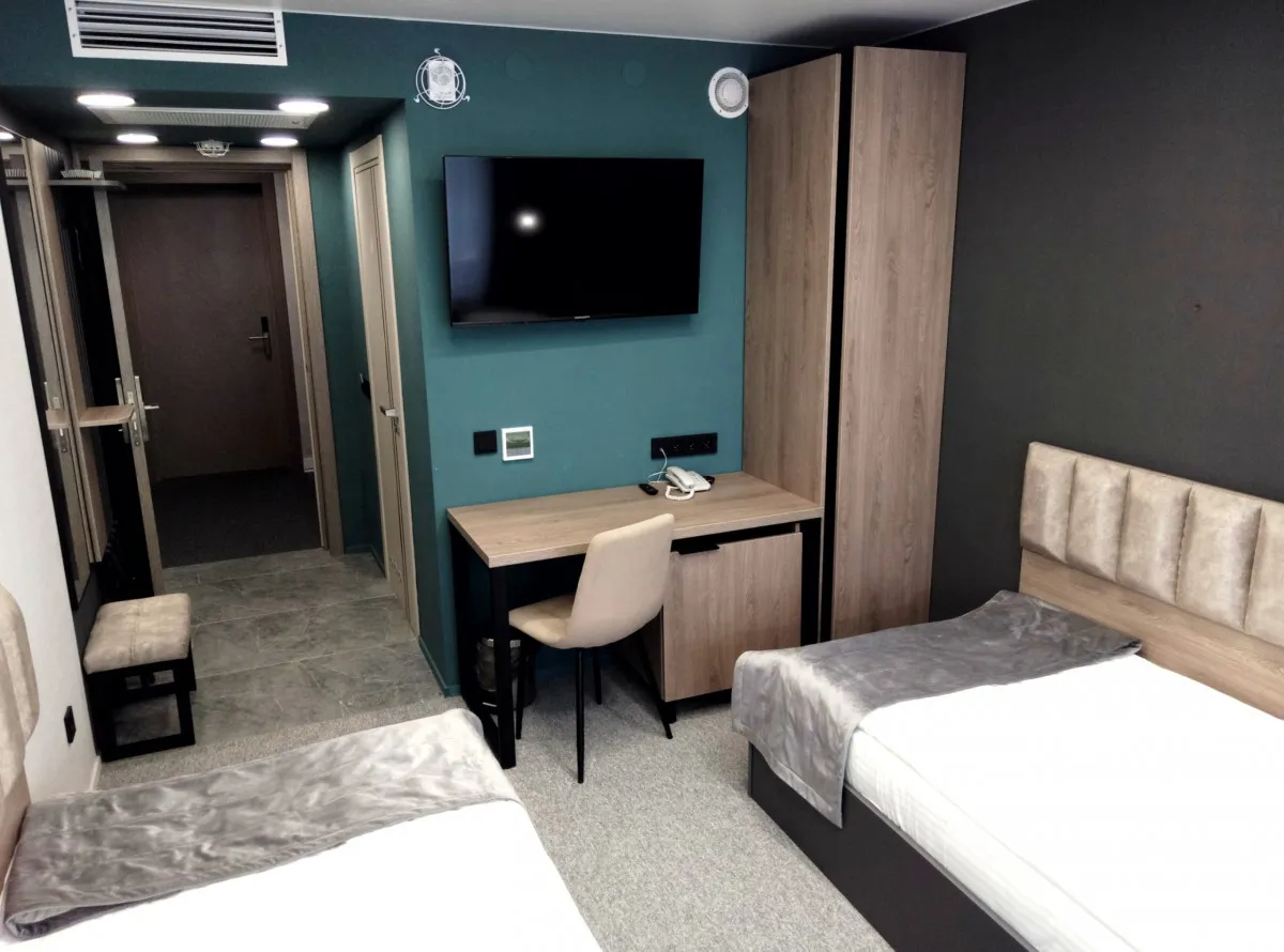 16 м2, две односпальные кровати, рабочая зона, вид на центр города