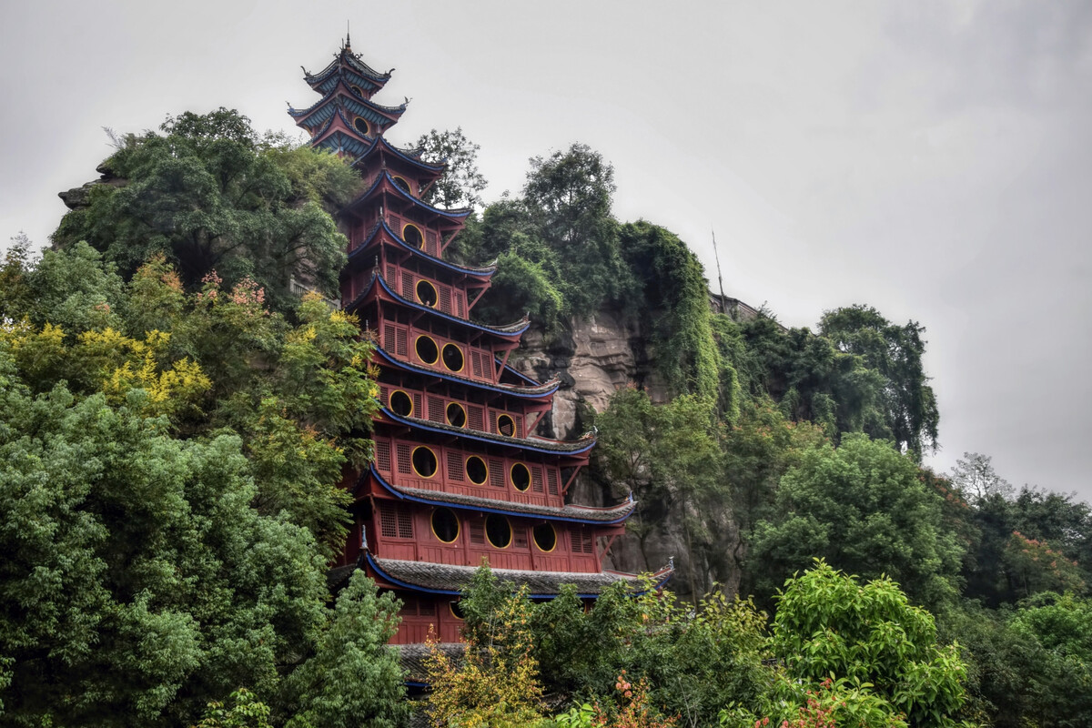 Далее туристы отправляются на экскурсию в Шибаочжай (Shibaozhai). Название буквально переводится как «Каменная крепость сокровищ». В ранние годы правления династии Цин храм находился на вершине горы, и добраться до него можно было только используя железную цепь, вбитую в скалу. В эпоху Цзяцин император нанял искусного мастера, чтобы тот исследовал, как заменить железную цепь и подняться на гору, после чего был построен этот деревянный павильон. С тех пор паломники и туристы могут не подниматься по железной цепи, а поднимаются на вершину горы по лестнице.