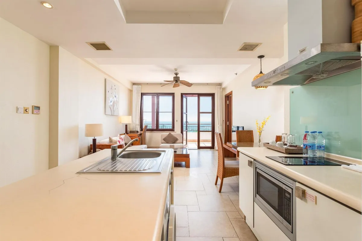 Для размещения гостей доступны уютные номера-студии с полностью оборудованной кухней, идеально подходящие для семейного отдыха или длительного проживания, а также просторные люксы с панорамными окнами, открывающими захватывающие виды на Южно-Китайское море.