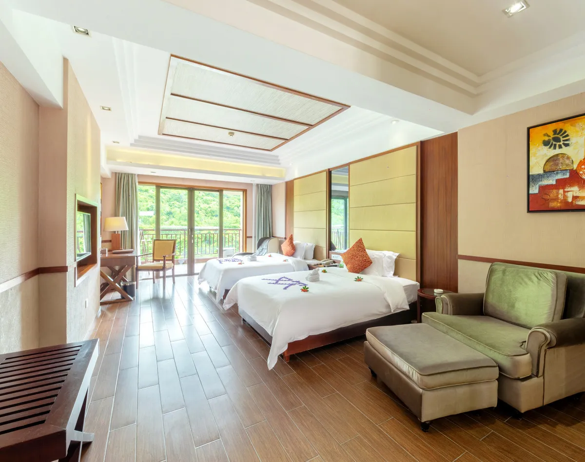 50 м2, есть балкон с видом на горы, кровать размера king-size или две односпальные кровати (доп. кровать по запросу), 5-19 этаж, количество гостей: 3 взрослых + 1 ребенок