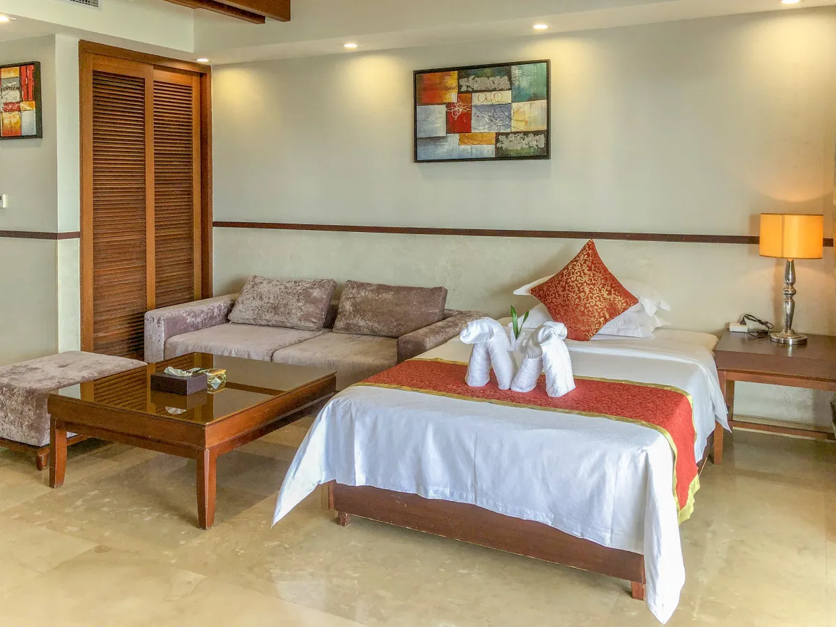 50 м2, есть балкон с видом на океан, кровать размера king-size или две односпальные кровати (доп. кровать по запросу), количество гостей: 3 взрослых + 1 ребенок