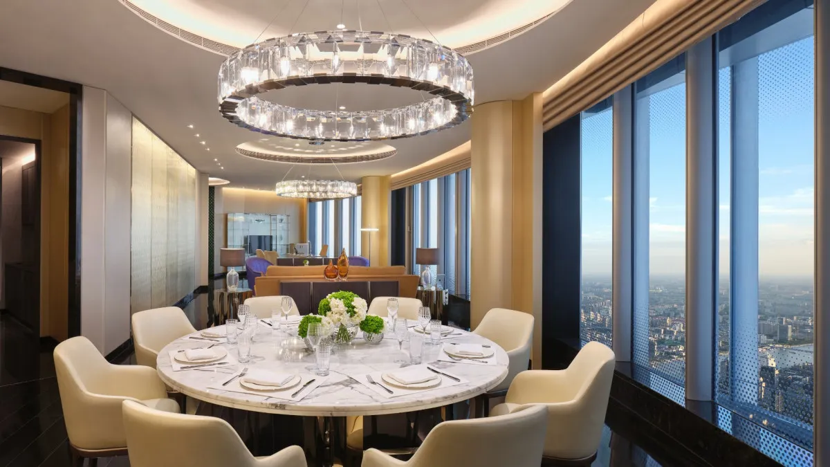 J Hotel Shanghai Tower расположен на вершине Шанхайской башни, самого высокого небоскреба Китая. Отель объединяет элементы китайской культуры и современного дизайна, создавая уникальную атмосферу роскоши и комфорта над облаками.