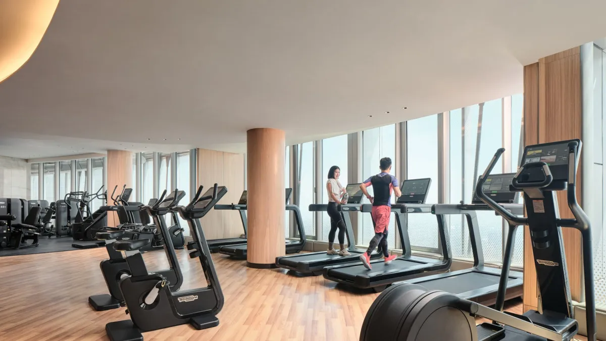 В отеле семь ресторанов и баров с авторской кухней и захватывающими видами на Шанхай. На 84–85 этажах расположены спа-центр и фитнес-зона с панорамным бассейном и залом для йоги.