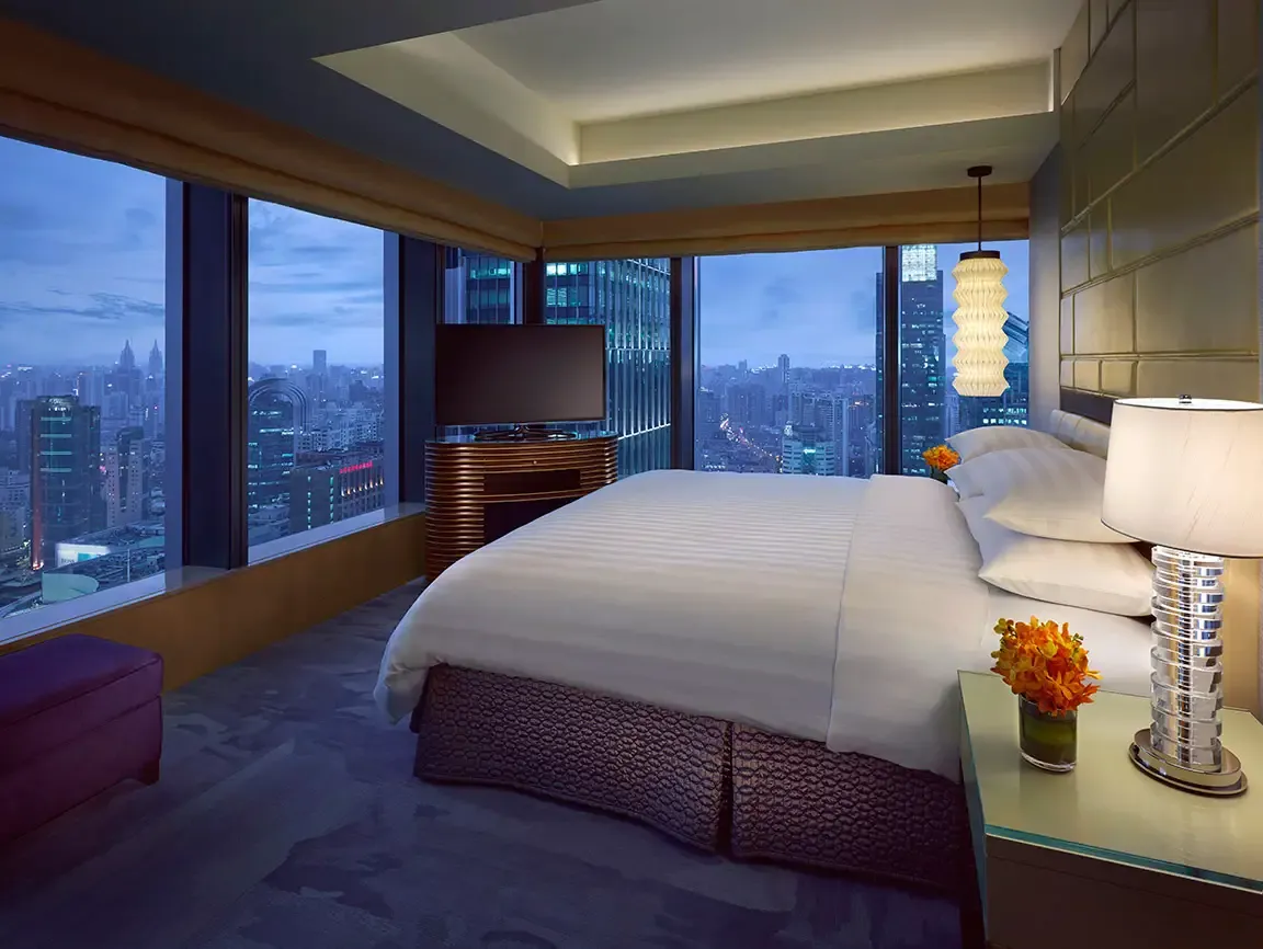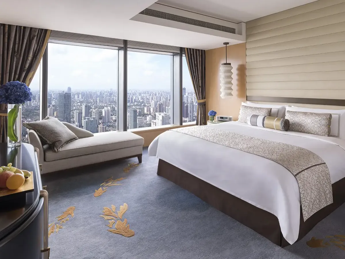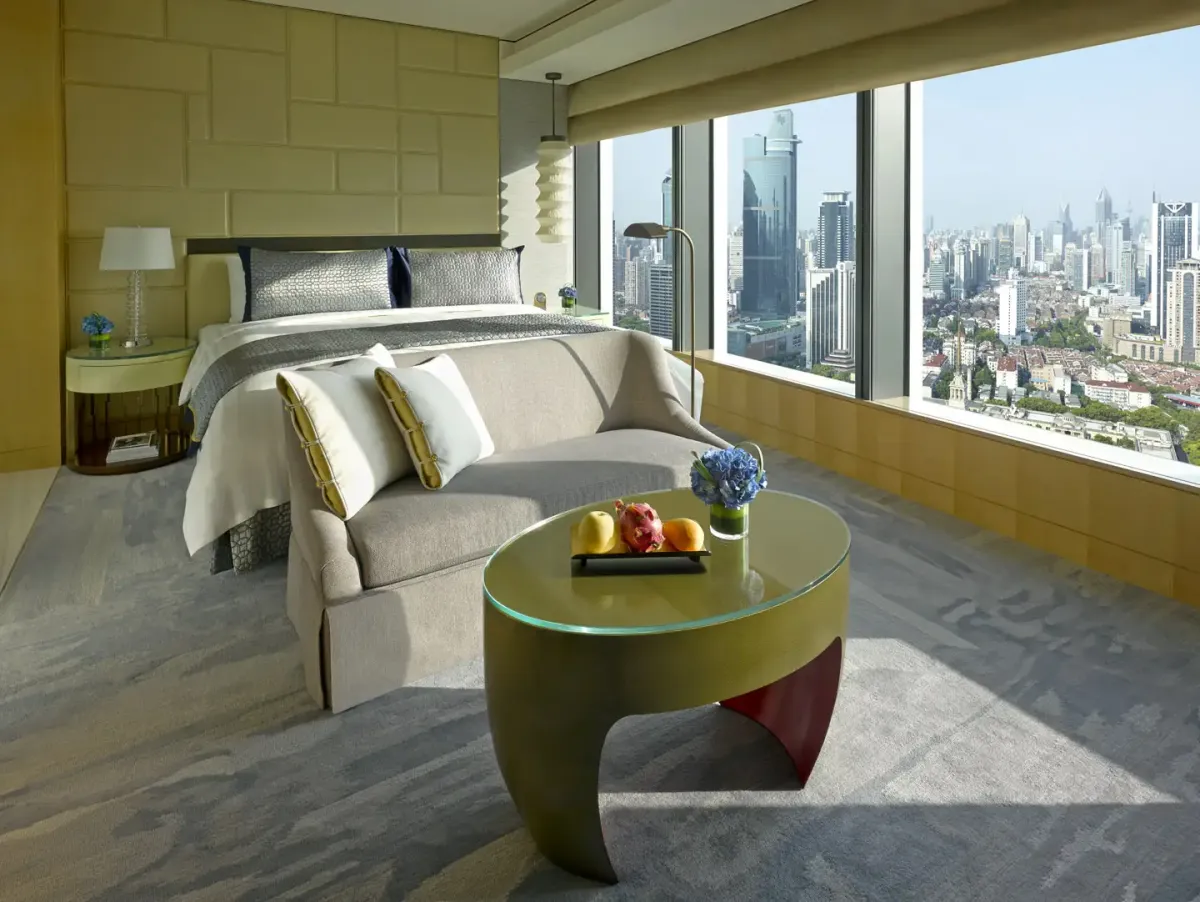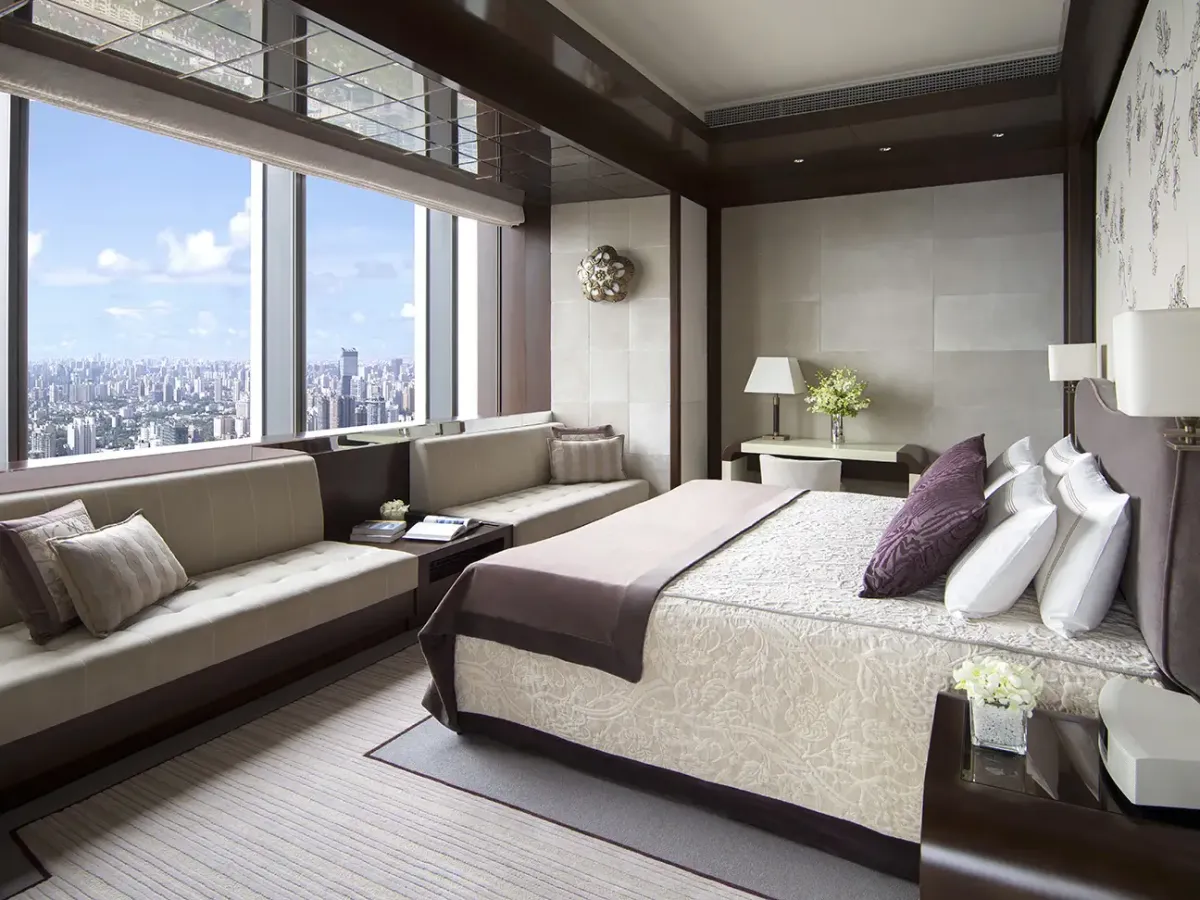 168 м2, двуспальная кровать размера «king-size», отдельная гостиная, обеденная зона, гардеробная, произведения искусства, клубные привилегии, окна от пола до потолка, панорамный вид на Пудун и Пуси