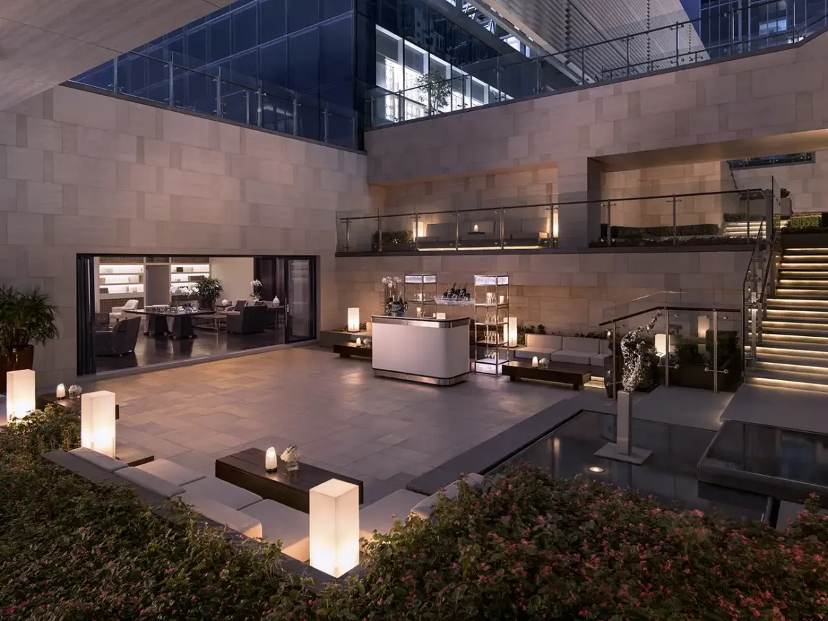 149 м2, смежные номера, две спальни, двуспальные кровати размера «king-size» или односпальные кровати, отдельная гостиная, гардеробная, клубные привилегии, окна от пола до потолка, вид на город