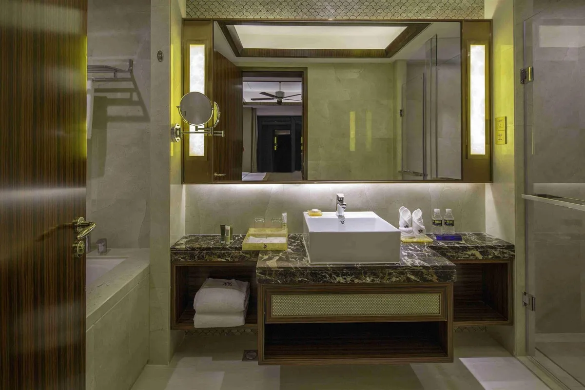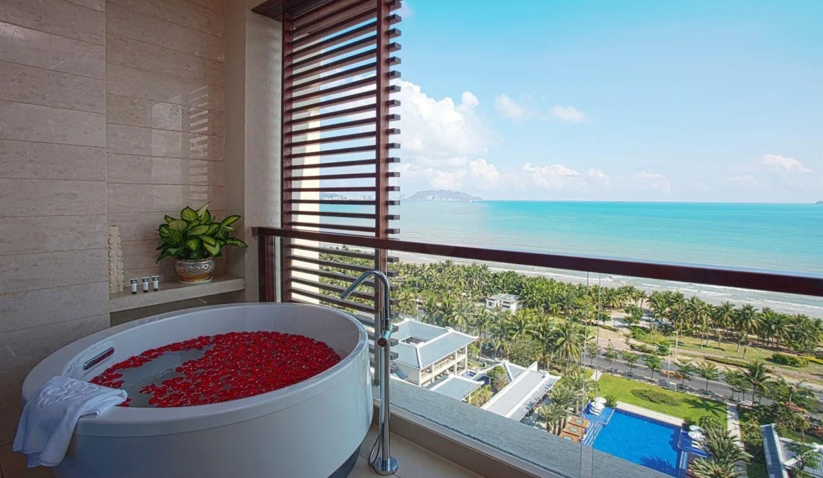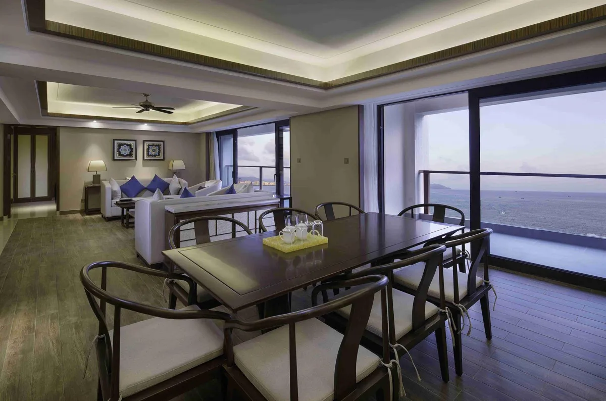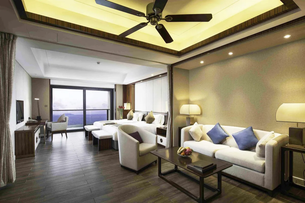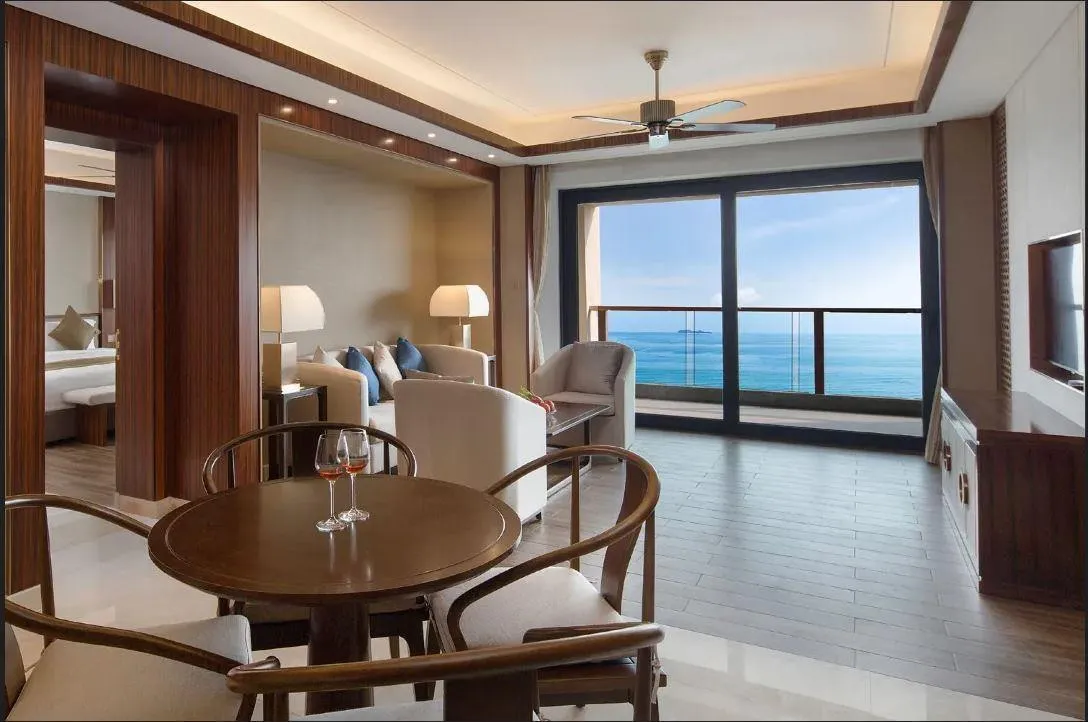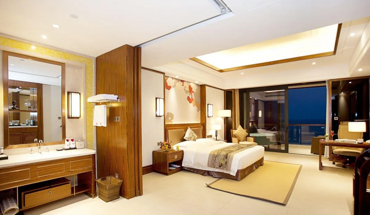 Семейный отель Jinghai Hotel & Resort предлагает туристам расслабляющий пляжный отдых и одновременно знакомство с городом. Его комплекс состоит из нескольких зданий с роскошными интерьерами в китайском стиле, в духе процветания династии Тан. Дизайн ресторанов и номеров сочетает элегантность и царское благородство, модные элементы современности и богатое культурное наследие. В центре территории отеля раскинулся широкий бассейн, окруженный пальмами. Для гостей: оздоровительный центр, детская игровая площадка, конференц- и банкетный залы для организации мероприятий.