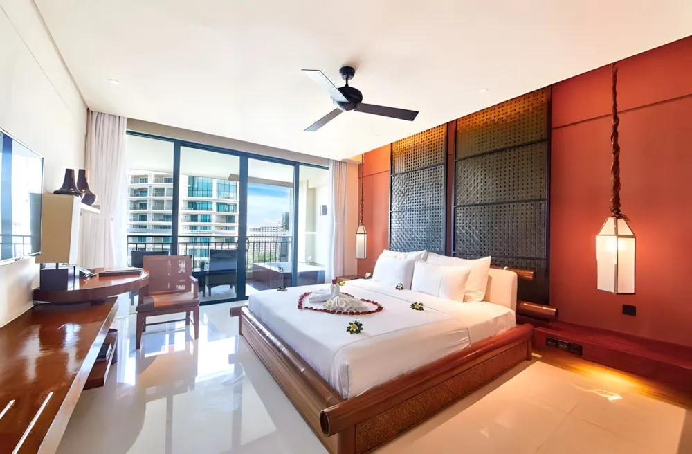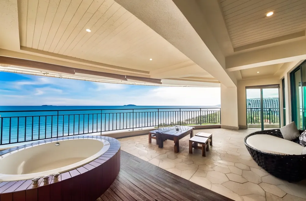 Уникальный архитектурный дизайн в виде двух круизных лайнеров с трехмерной системой вентиляции создает ощущение постоянного морского бриза, а панорамные окна номеров открывают захватывающие виды на Южно-Китайское море.