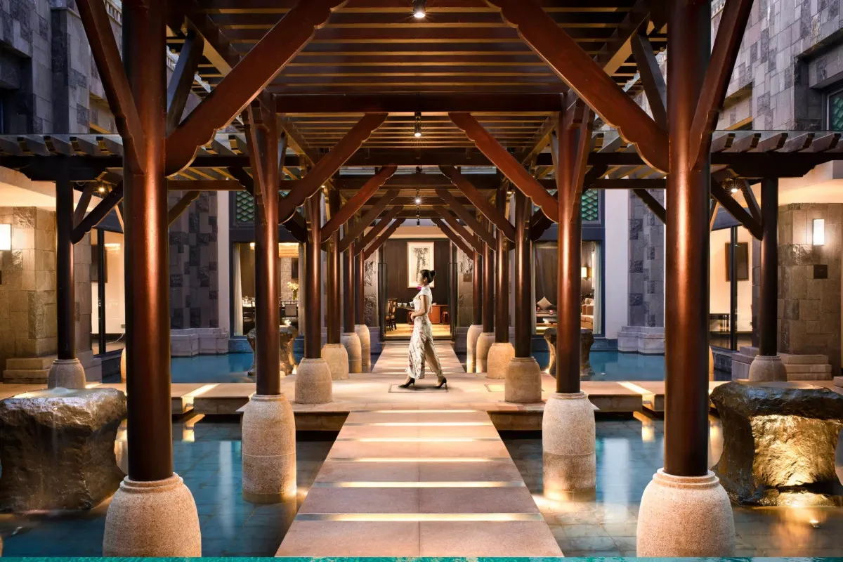 Raffles Hainan Clear Water Bay – пятизвездочный пляжный отель на юге китайского острова Хайнань, в Бухте чистой воды. Название этому месту дано не просто так: море здесь отличается кристальной чистотой. А сам отель предлагает стильный отдых класса люкс и выход к песчаному пляжу протяженностью 12 км. Кстати, это один из трех «поющих» пляжей мира – из-за особого минерального состава песка он «шепчет» под ногами.