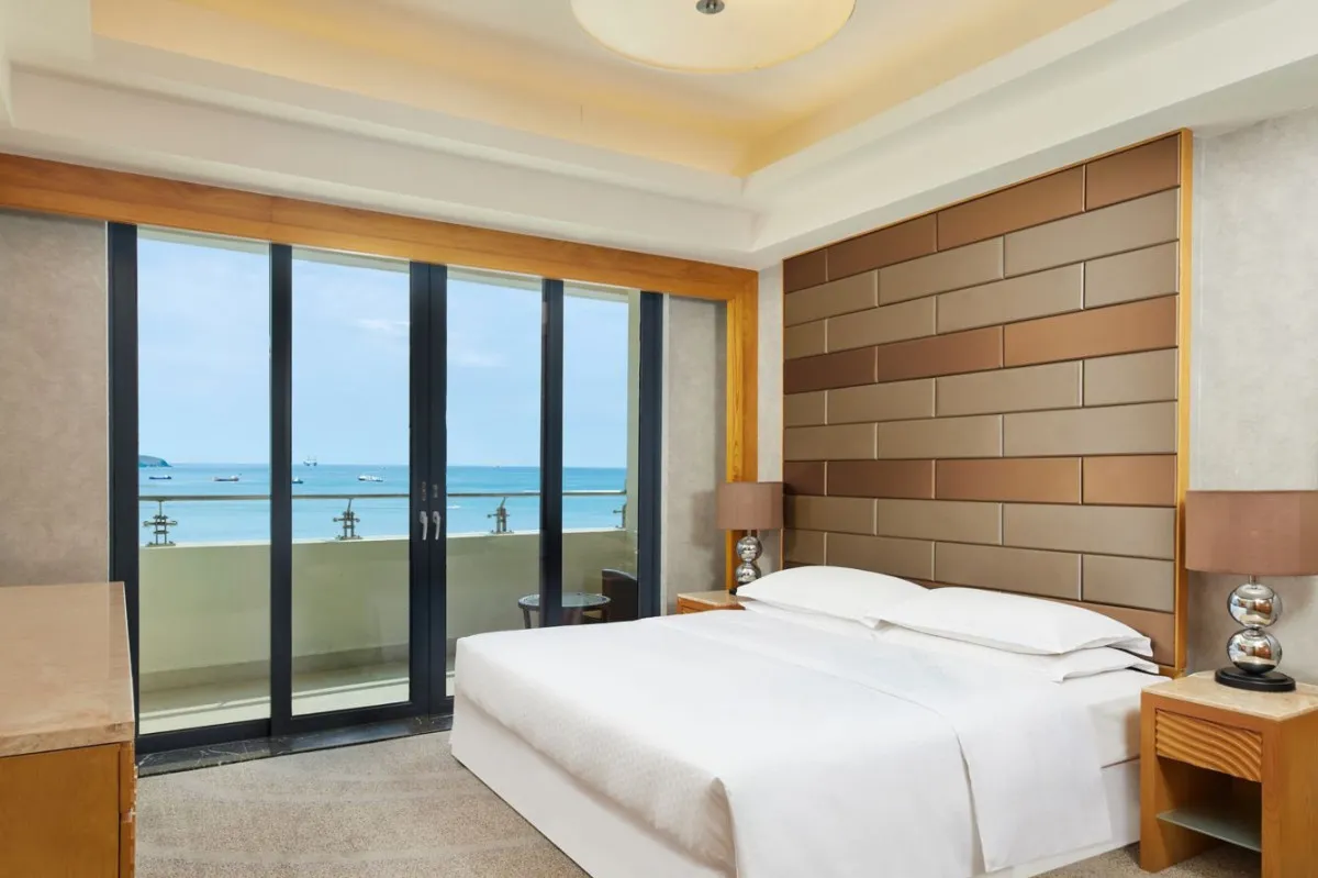 Sanya Bay Four Points Sheraton – современный отель в самом сердце бухты Санья, расположенный всего в 200 метрах от живописного пляжа. Здание отеля состоит из 29 этажей с шестью лифтами и предлагает комфортабельное размещение с потрясающим видом на океан. В номерах туристов ждут все необходимые удобства для идеального отдыха: удобные кровати, бесплатный высокоскоростной интернет, ежедневное пополнение бутилированной воды и другие приятные мелочи.