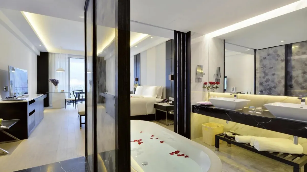 Sanya Palace Resort Yalong Bay 5* – элегантный отель, расположенный на берегу Южно-Китайского моря в живописной бухте Ялонг Бэй тропического острова Хайнань. Отель предлагает гостям непревзойденный уровень комфорта и сервиса, сочетая современную роскошь с азиатским гостеприимством. Туристов ждут светлые номера с панорамными видами на море, озеро или тропические сады. Особого внимания заслуживают просторные виллы с инфинити-бассейнами и приватными террасами для уединенного отдыха.