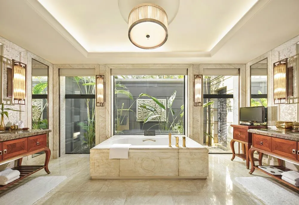 60 м2, с видом на тропический сад и балконом. В номере: две односпальные кровати, телевизор, туалетный столик, кресла, мраморная ванная комната с тропическим душем.