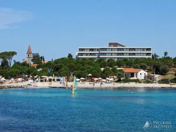 Отель находится на острове Св. Андрия (другое название – Красный остров) с живописными бухтами и пляжами, которые отмечены международным Голубым флагом, что является гарантией чистоты воды, безопасности, высокого уровня качества обслуживания. Расположен в 15 минутах езды на катере от центра Ровиня. 40 км от аэропорта. Территория отеля занимает 24 га. В основном здании отеля (полностью реконструировано в 2006 году) 3 этажа и 4 лифта, в отдельно стоящем здании с апартаментами All Suites (открыт в 2009 году, первый подобный проект в Хорватии) – 4 этажа и 1 панорамный лифт.