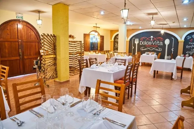 • Trattoria – ресторан итальянской кухни. Время работы: обед и ужин для гостей номеров Roc Plus с 07:30 до 10:00 и с 12:30 до 14:45; ужин a la carte с 18:30 до 22:00 (необходимо бронирование)