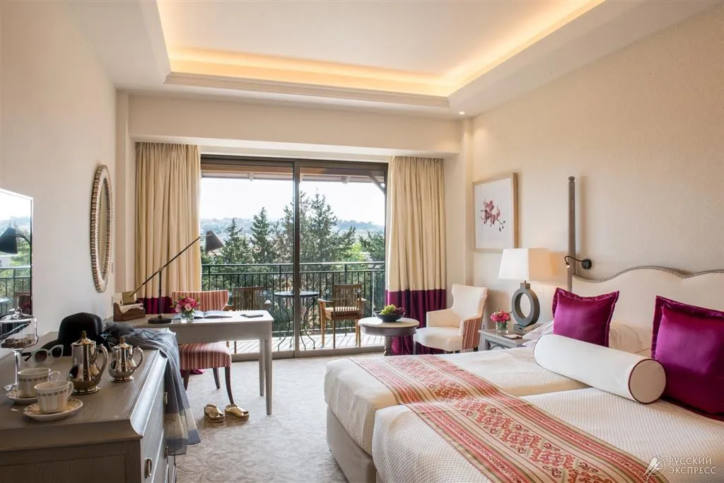 34 м2, номер с балконом, видом на окрестности, одной кроватью king-size или двумя односпальными кроватями, мраморной ванной комнатой с душем и ванной. Максимальное количество гостей: 3.