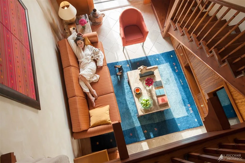 60 м2, вилла с садом, патио, небольшим бассейном, гостиной, спальней в мезонине, одной кроватью king-size, душевой кабиной на первом и втором этажах, а также ванной на втором этаже и доступом в бассейн только для взрослых. Максимальное количество гостей: 3 взрослых и ребенок до 12 лет или 2 взрослых и 2 детей до 12 лет.