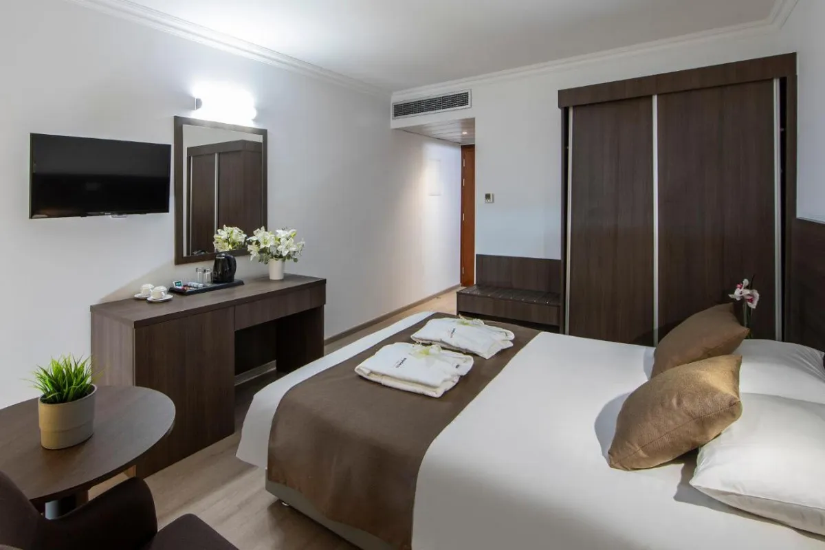 Отель распологает 94 номерами для гостей, предлагающих качество и комфорт и полностью оснащены кондиционерами. Недавно отремонтированные номера с высококачественным ламинированным полом, новой мебелью и новыми телевизорами. Услуги номеров включают прямую телефонную линию, спутниковое телевидение, мини-бар и фен. Услуги отеля включают холл, бар, ресторан, бар у бассейна, два бассейна (один внутри помещения), Центр здоровья с сауной, джакузи и тренажерами , конференц-зал на 50 человек. Обширная развлекательная программа в течение года включает Кипрский вечер с фольклорным шоу и живой музыкой и Интернациональный вечер с музыкой. Отель предлагает бесплатный интернет во всех номерах и общественных местах.
