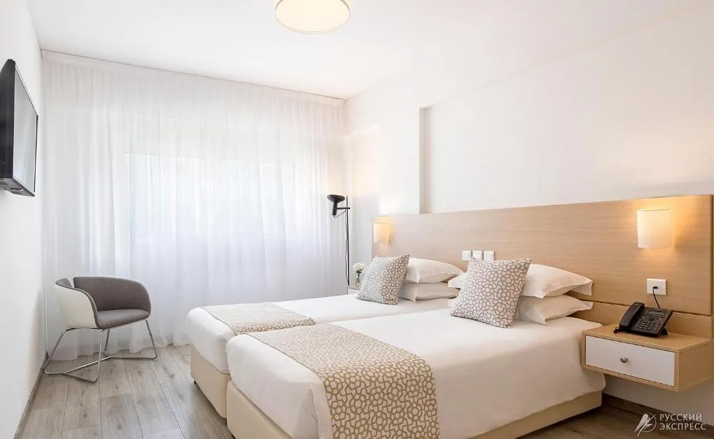 26 м2, двухместный номер с видом на бассейн. В нем есть двуспальная кровать или две односпальные кровати. Балкон со столом и стульями. Количество гостей: 2 взрослых + 1 ребенок