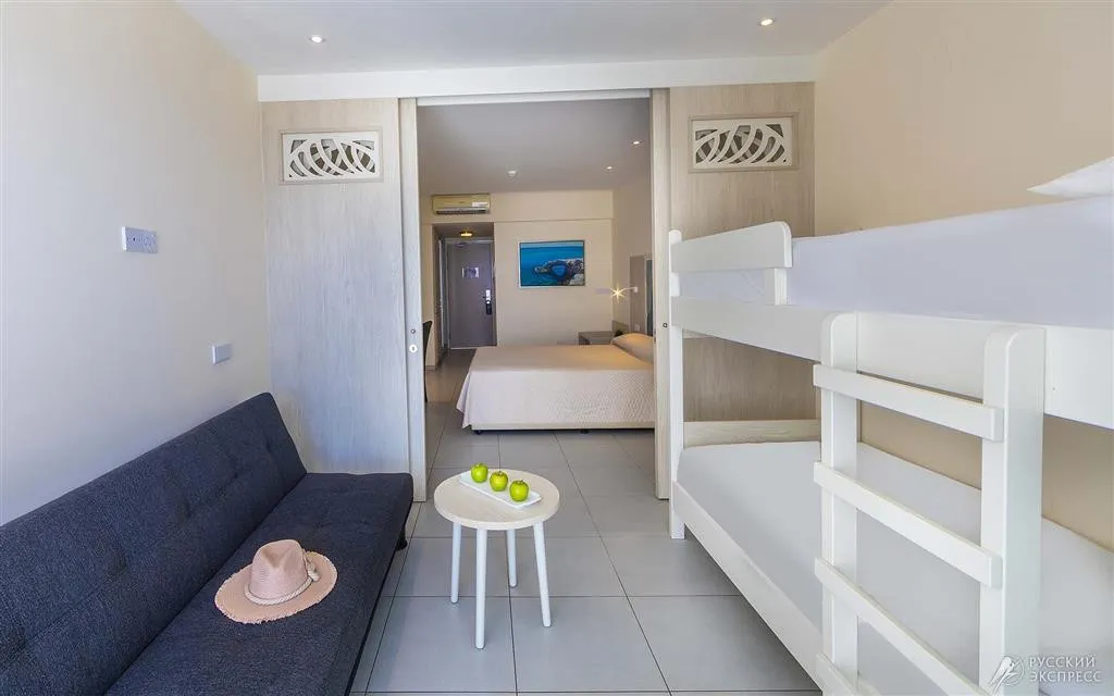 34 м2, в номере 2 односпальные кровати, 1 дополнительная кровать в спальне и 1 детская кроватка. Количество гостей: 2 взрослых/ 4 взрослых/ 2 взрослых + 3 детей