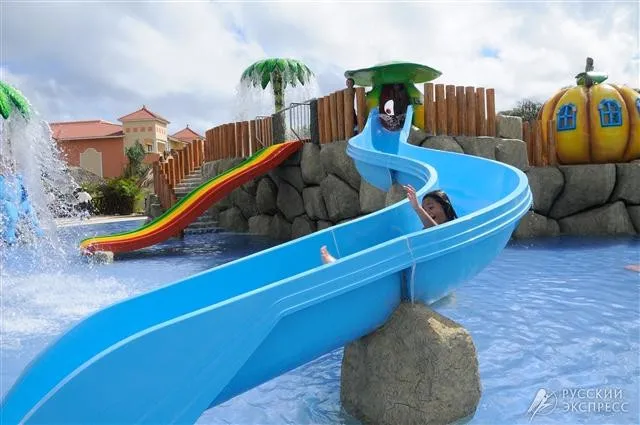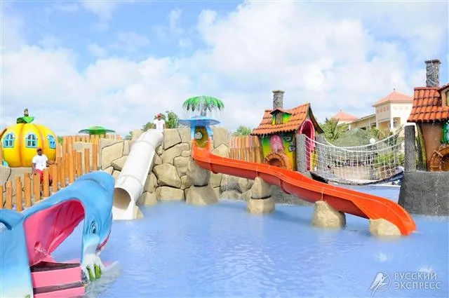 2 бассейна, аквапарк (горка и фонтан), парк развлечений, клуб, игровая комната, стульчики, кроватки (по запросу), специальное меню, пеленальные столики в общественных туалетах, мини-дискотека, услуги няни, коляски (за доплату).