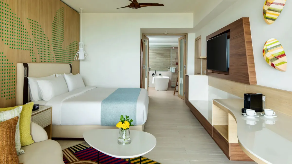 57 м2, с видом на море и пляж и меблированным балконом. В номере: две односпальные кровати Hyatt Grand Bed, телевизор, письменный стол, софа, ванная комната. Доступ в клубный лаундж и к клубному бассейну.