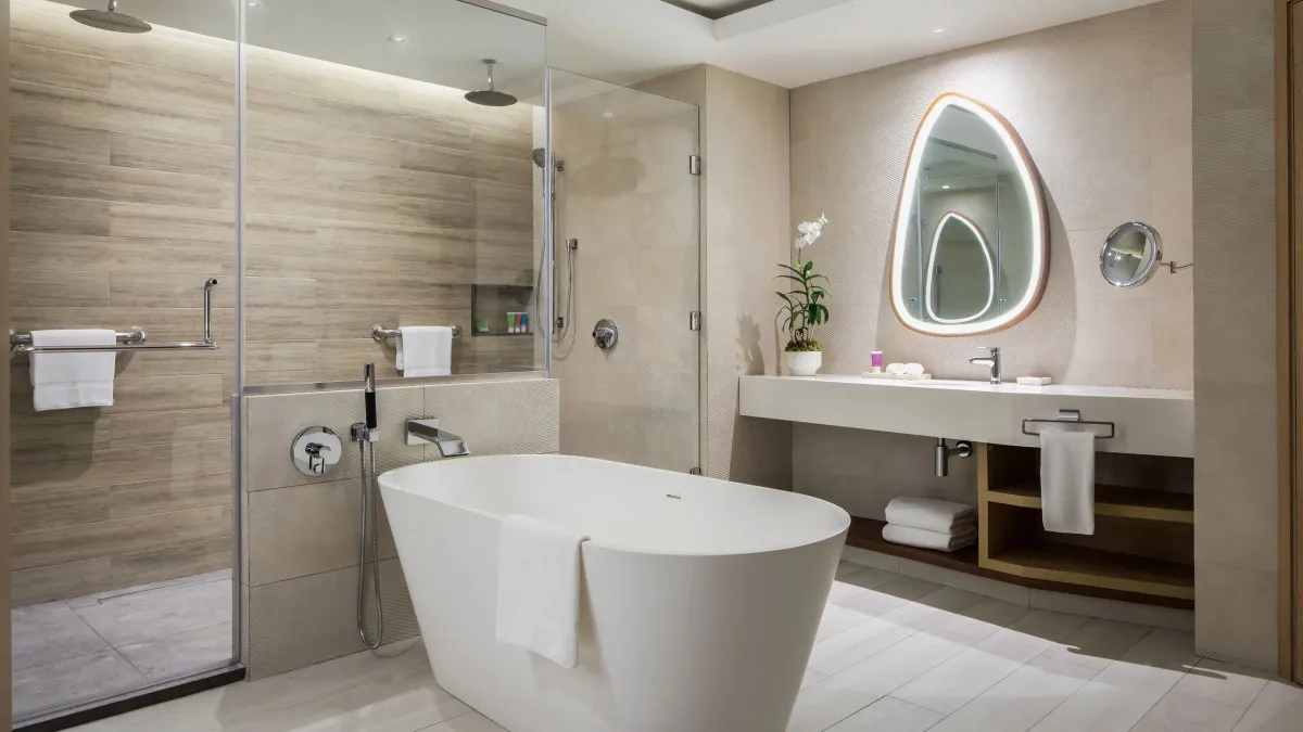 57 м2, с видом на море и меблированным балконом. В номере: king-size кровать Hyatt Grand Bed, телевизор, письменный стол, софа, ванная комната.