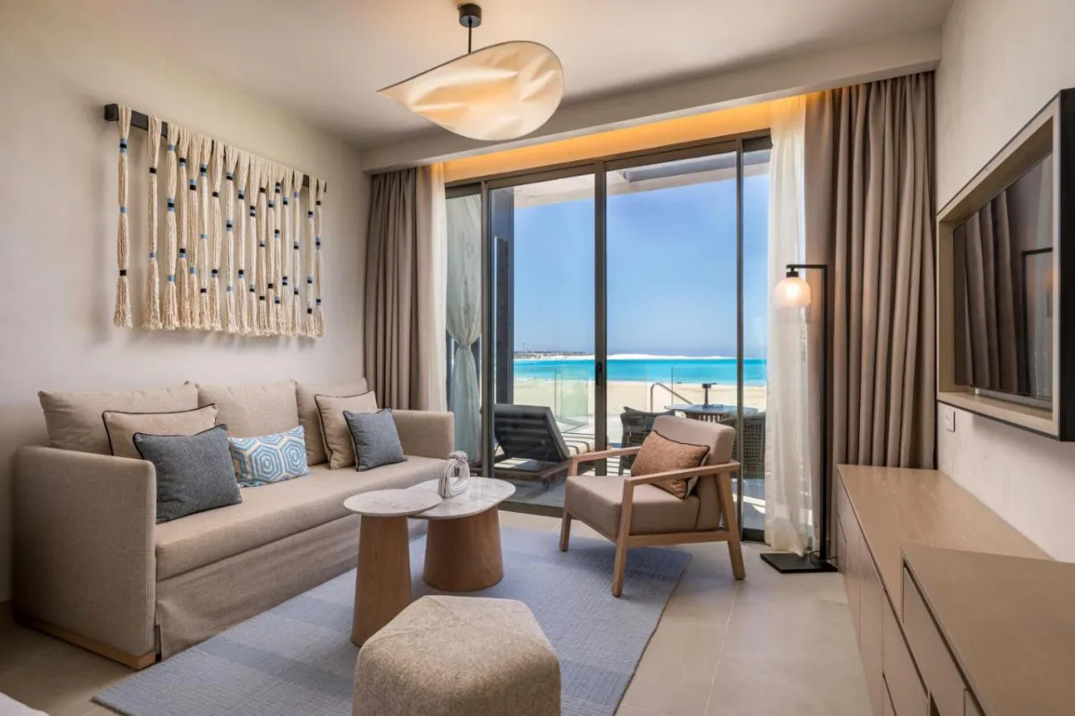 77 м2, вид на море, одна двуспальная кровать. Количество гостей: до 3