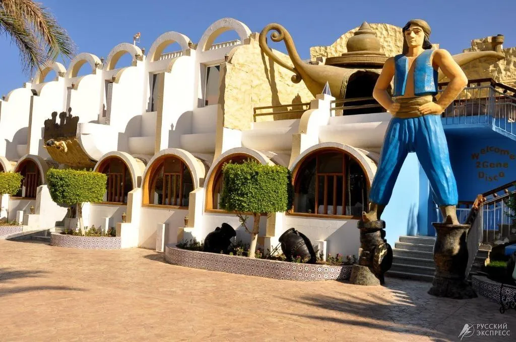 Отель Aladdin Beach Resort, 4* открыт в 1995 году и состоит из 2-х двухэтажных корпусов, комплекса одноэтажных бунгало и здания ресепшн. Всего 439 номера. Отель прежде всего ориентирован на семейный отдых с детьми. Aladdin Beach Resort, 4* является частью комплекса из трех отелей (Ali Baba, Aladdin и Jasmin). Гостям отеля разрешено пользоваться аквапарком, пляжем и бассейнами отеля Ali Baba Palace 4* (рядом стоящий). Расстояние от аэропорта Хургады — 8 км, от центра города — 15 км. Отель расположен на берегу моря.
