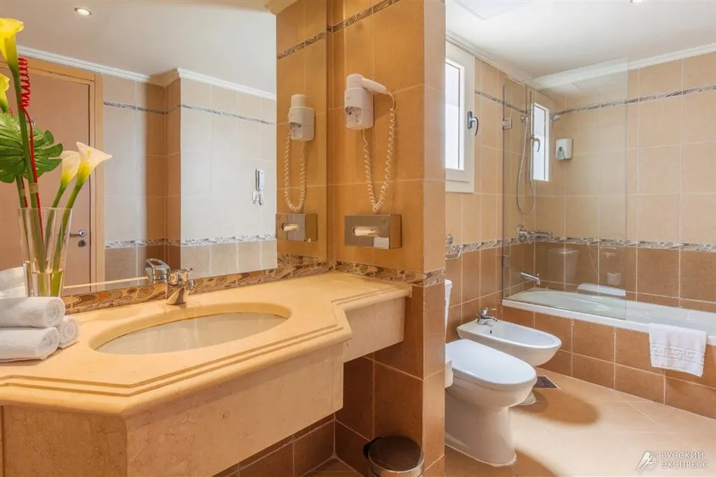 35 м2, номер с балконом, видом на море, душем в ванной комнате, одной кроватью king-size и одной односпальной кроватью. Максимальное количество гостей: 3.
