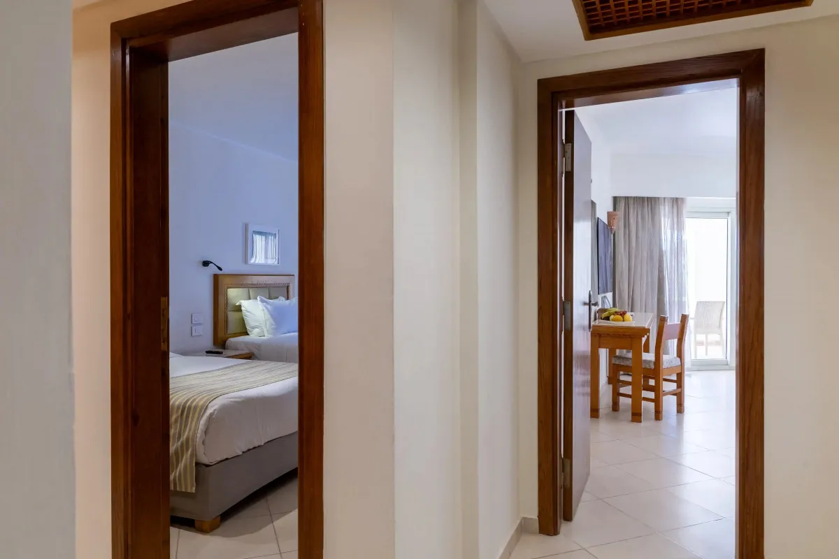 45 м2, вид на море, две спальни (двуспальная кровать, двухъярусная кровать). Количество гостей: 4 взр. или 2 взр.+2 детей