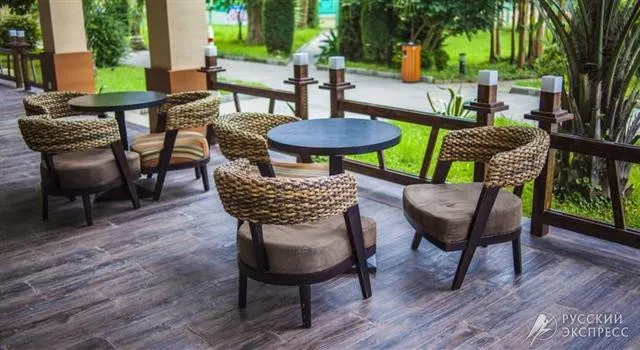 В ресторане сервируют фирменные блюда грузинской и европейской кухни. Блюда и напитки подают также на ресторанной террасе, с которой открывается вид на пляж. В распоряжении гостей принадлежности для приготовления барбекю.
