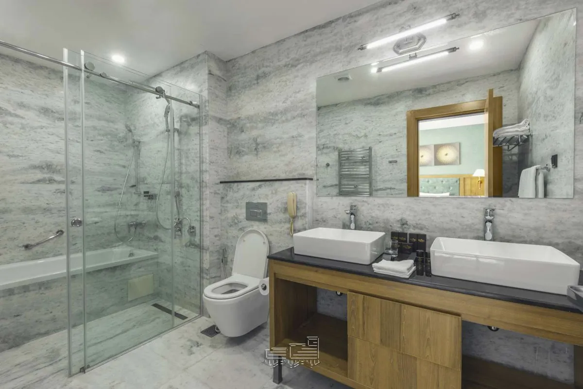 Отель предлагает 118 просторных номеров и люксов с современной отделкой и элементами грузинского стиля. Все номера оснащены кондиционером, телевизором, рабочей зоной, мини-баром, принадлежностями для чая и кофе, а также ванными комнатами с душем или ванной и премиальной косметикой.