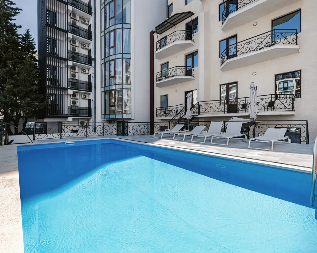 В инфраструктуру отеля входят крытый и открытый бассейны, тренажёрный зал с кардио- и силовым оборудованием, бесплатный высокоскоростной Wi-Fi, а также круглосуточная стойка регистрации.