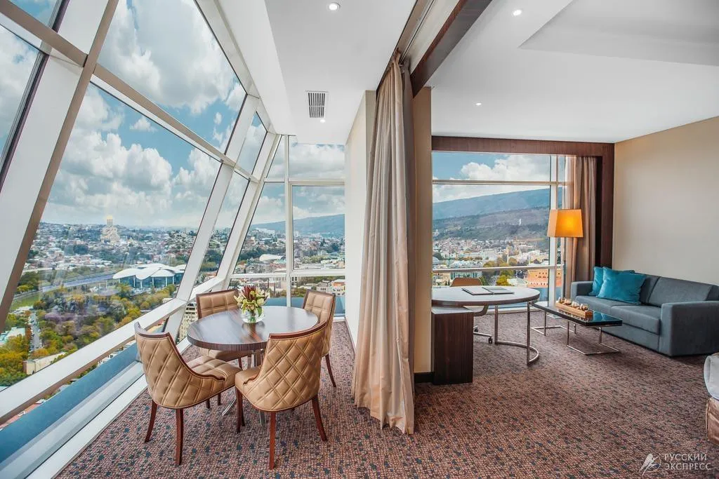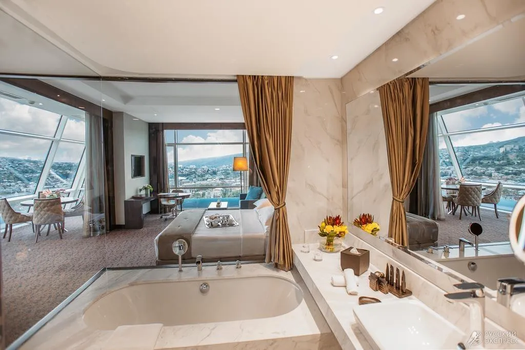 Роскошный отель The Biltmore Hotel Tbilisi выделяется в городе 32-этажным стеклянным небоскребом посреди исторических зданий. Из его номеров открываются захватывающие виды на столицу. Блестящие интерьеры отражают ностальгию по эпохе прошлого, гламур и элитарность. Это яркий образец премиального отдыха в Грузии.