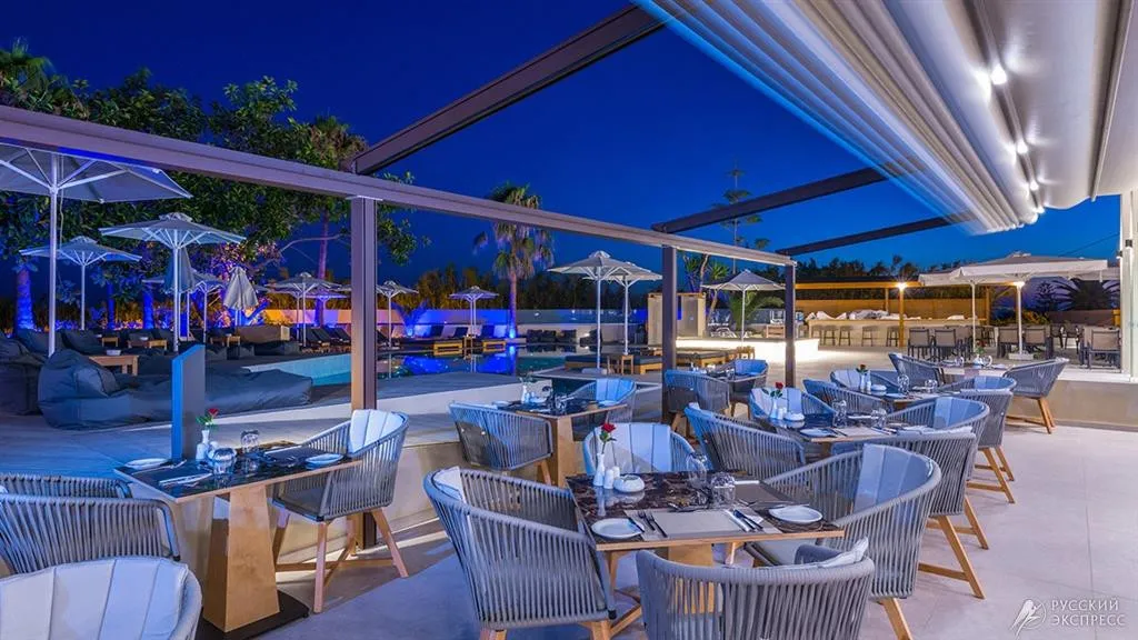 • Центральный тематический ресторан – часы работы: 07:30–11:00, 12:30–14:30, 19:00–21:30. Средиземноморская кухня/ кулинарные шоу на гриле с рыбой, мясом и овощами/ уголок критской кухни, диетический уголок, органический уголок/ паста «а ля минута». Шведский стол: самообслуживание