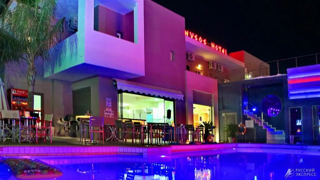 Отель Dionyssos Hotel расположен на центральной дороге ведущей к пляжу в городке Малья. Расстояние от пляжа всего 450 м. Отель находится почти в центре городка Малья, известного своими барами и ночными дискотеками. Расстояние от международного аэропорта Ираклиона 32 км