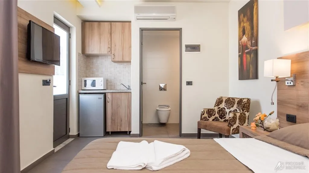 Индивидуальный кондиционер, Балкон/Терраса, Банные принадлежности, Кухонный уголок, Холодильник, Микроволновая печь, Электрический чайник, Тостер, Спутниковое телевидение, Сейф, Фен, Душ